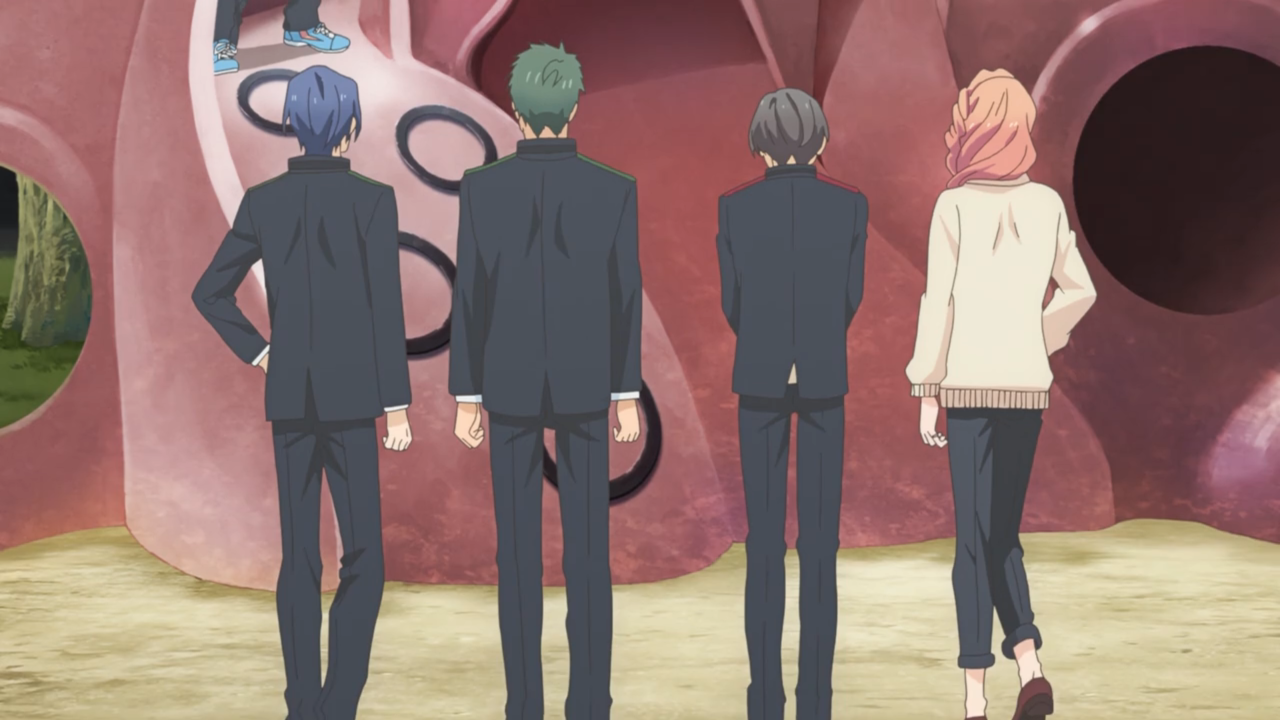 I’m not going to talk a lot about the Sasugai situation because as Yukimitsu said, it was a waste of time. They brought up the worst-case scenario of why Sasugai had been missing from school, found out all the work he had been putting in to get all the data for the competing teams, and then found him asking the coach to teach the team his special trick. It seemed like a way to raise the drama, I guess? But like Maeshima said, it’s Sasugai. The guy who disappeared during the club competition to do research and the guy who didn’t even put in his transfer paperwork until after he’d won. So… I guess good on Maeshima for understanding Sasugai enough to know that he was just scheming.
