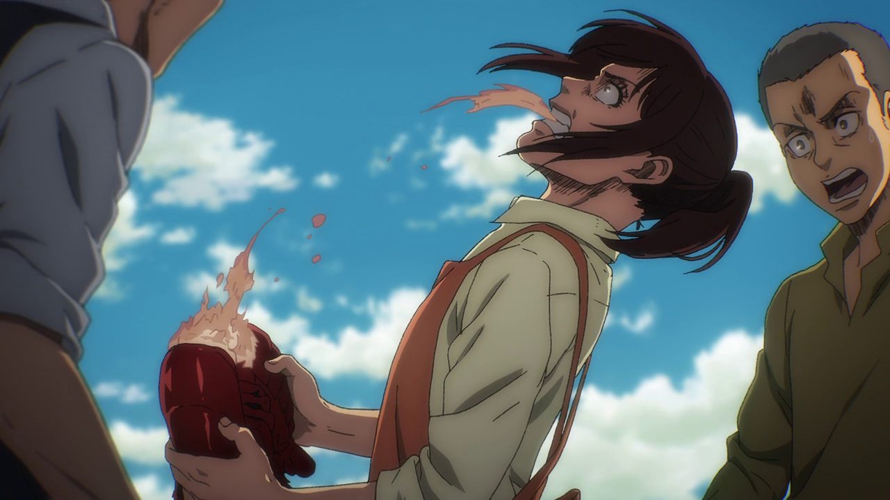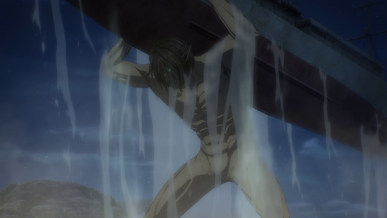 We also are starting to see a rift between the Shiganshima trio. While they’re probably still considered friends, they seem to be slowly drifting a part due to circumstances. The three of them were isolated from each other in the final moments of the episode, all in their own thoughts. Even Armin commented that growing up, he was the one who understood how Eren thought the best. But now, he’s realizing how much Eren has changed and he isn’t able to understand him as well as he used to. And it’s sad because out of everyone, Armin was probably the one that Eren valued the most. They were most likely best friends. But now, it seems like their friendship has been strained if that look Armin gave Eren before pulling him into the airship had anything to say about it. Even Mikasa seems to be having difficulties with her current feelings towards Eren as she seems incredibly saddened by the atrocities that Eren has committed (which is understandable) all the while mourning Sasha’s death. And then Eren we have no idea what Eren is thinking besides most likely continuing his warpath with his declaration of having to keep fighting. Everything that was said back in earlier seasons feel like they keep getting twisted or take on a double meaning.