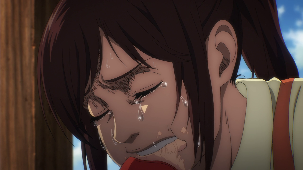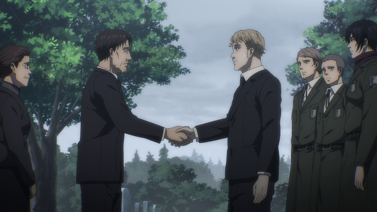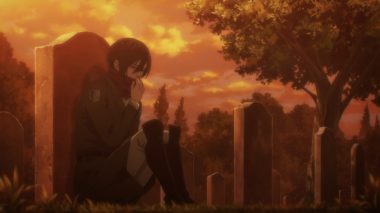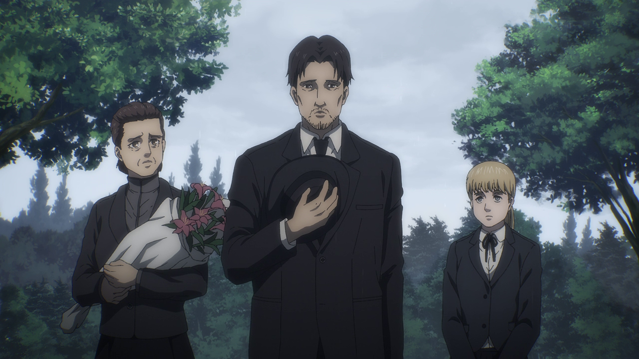 Seeing all the bouquets on Sasha’s grave just demonstrated again how many people loved her. I think my heart went out to Connie in this moment as he viewed Sasha as his twin and now feels like half of himself is gone. The two were definitely the closest and it’s heart-wrenching to see Connie so down. The poor guy has had his family and entire village stripped away from him and Sasha’s death feels like the final breaking point for him. And when Sasha’s family showed up… not gonna lie, I felt a bit misty eyed. A parent never wants to live longer than their child and we knew how close Sasha and her dad were in the second season. Not to mention we actually see the small girl that Sasha saved back in her village with them. Sasha was literally the one to bring life back in that child’s eyes and it had to be absolutely crushing to find out the person you looked up to was dead. Ugh… my heart…