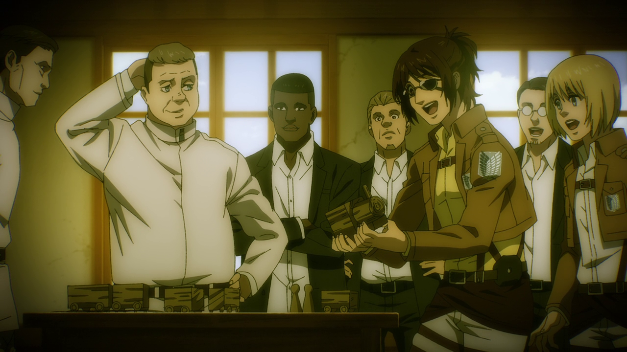 I appreciate that this episode took the time to show us what exactly we missed from in between the end of season 3 and the start of season 4. While the pacing was a bit fast, at least we got the low down. Like how the Zeke supporters defected from Marley and were the ones to help Paradis progress technologically. Which explains their new ODM gear. They already had the base for it with Kenny’s gear, but with the Marley technology, they were able to refine it so it doesn’t have as big of a weakness as Kenny’s crew did. We even found out what happened to the fleets that would go to Paradis and why they would always disappear. And then there’s the stuff from Zeke and how he turned traitor on Marley. Though we didn’t really learn as to why he did so or what his headspace was. For the time being, Zeke SEEMS to be working with Paradis, but we don’t exactly know his exact reasons.