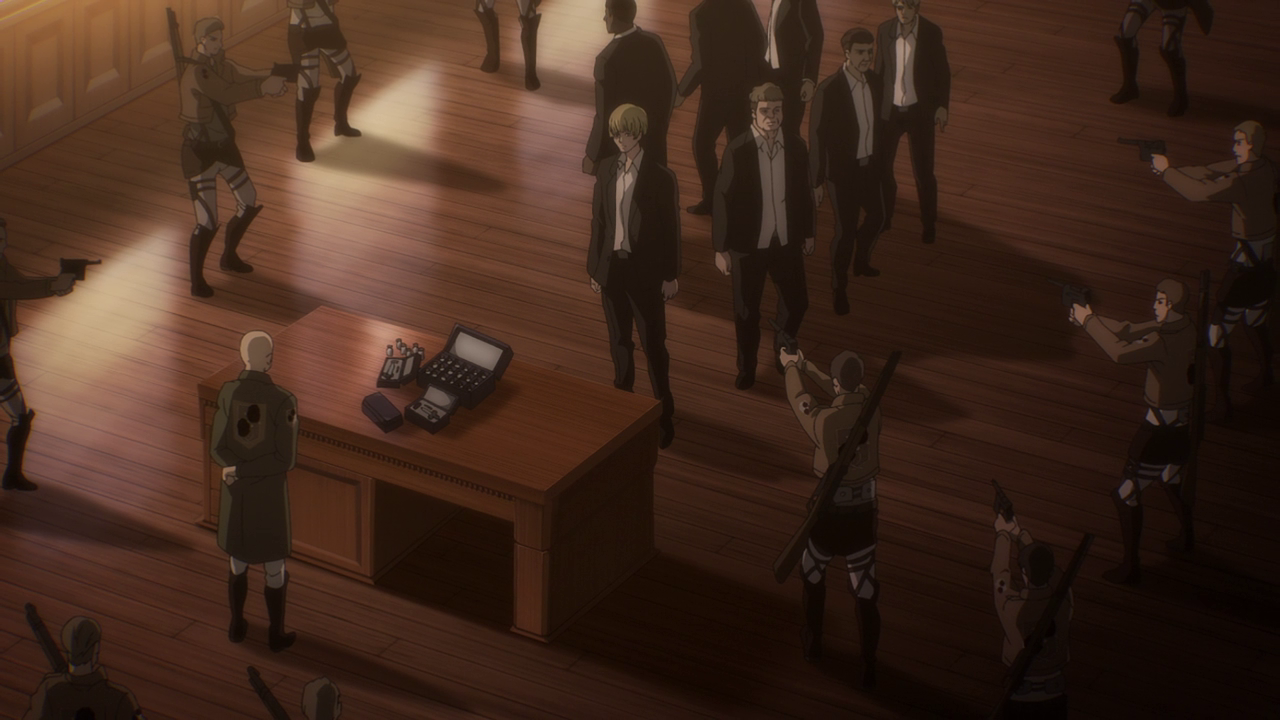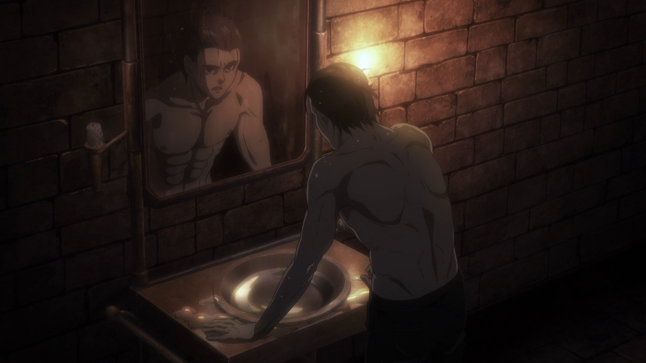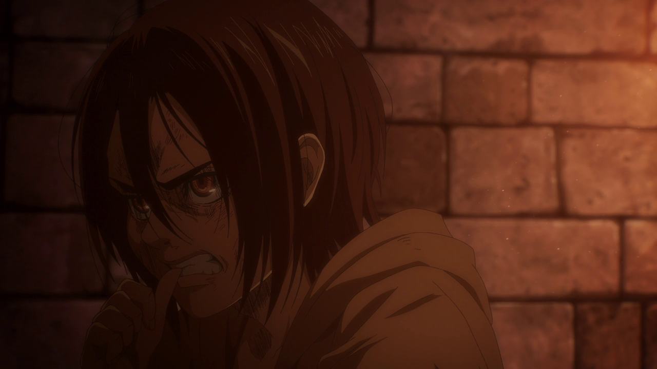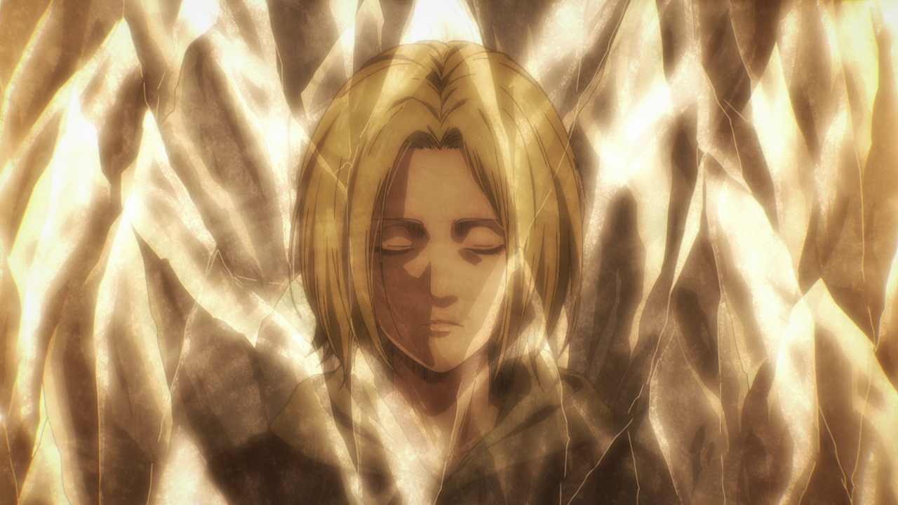 Also, MY GIRL ANNIE IS BACK. Kind of… She’s still there encased in crystal since the first freaking season. But it’s nice seeing her again lol. Especially since Armin seems to be using her as a sound board as he sorts his feelings out verbally.