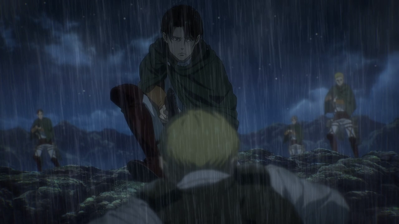 We also are starting to see a rift between the Shiganshima trio. While they’re probably still considered friends, they seem to be slowly drifting a part due to circumstances. The three of them were isolated from each other in the final moments of the episode, all in their own thoughts. Even Armin commented that growing up, he was the one who understood how Eren thought the best. But now, he’s realizing how much Eren has changed and he isn’t able to understand him as well as he used to. And it’s sad because out of everyone, Armin was probably the one that Eren valued the most. They were most likely best friends. But now, it seems like their friendship has been strained if that look Armin gave Eren before pulling him into the airship had anything to say about it. Even Mikasa seems to be having difficulties with her current feelings towards Eren as she seems incredibly saddened by the atrocities that Eren has committed (which is understandable) all the while mourning Sasha’s death. And then Eren we have no idea what Eren is thinking besides most likely continuing his warpath with his declaration of having to keep fighting. Everything that was said back in earlier seasons feel like they keep getting twisted or take on a double meaning.