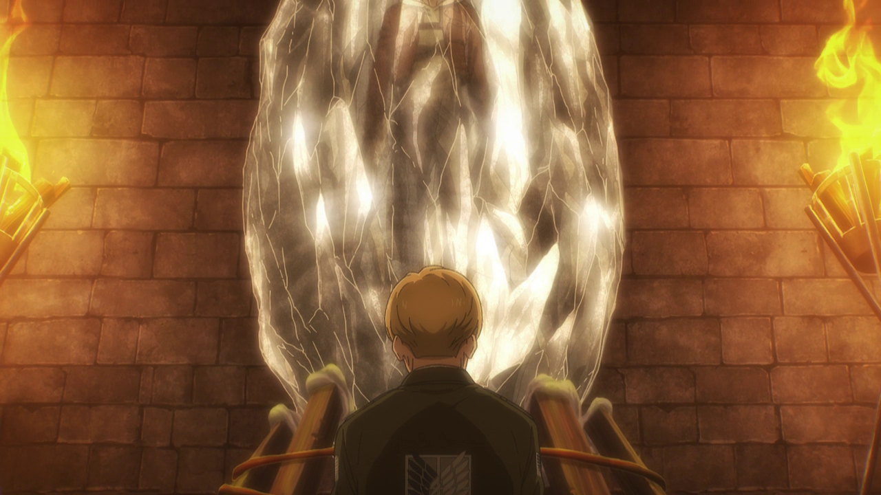 Also, MY GIRL ANNIE IS BACK. Kind of… She’s still there encased in crystal since the first freaking season. But it’s nice seeing her again lol. Especially since Armin seems to be using her as a sound board as he sorts his feelings out verbally.