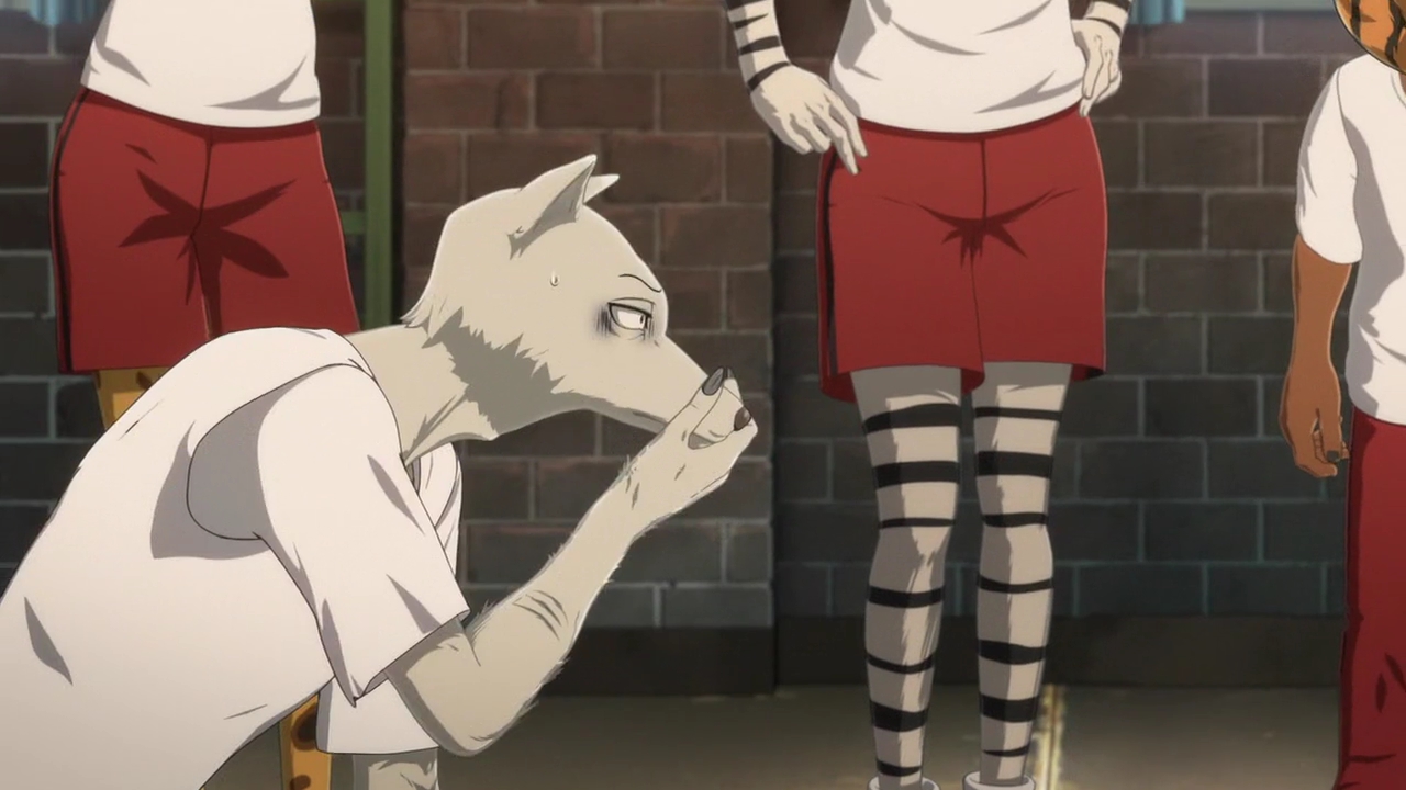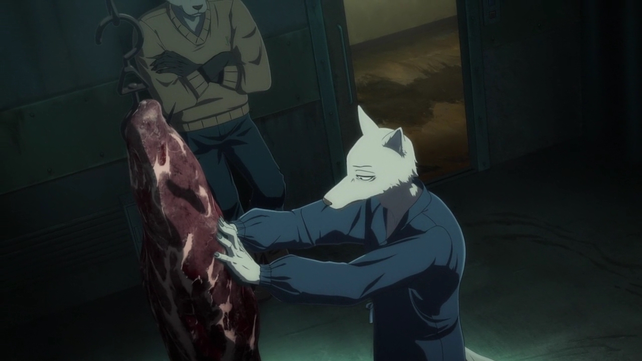Legoshi officially has finished phase one of his training. He’s completely won over his desire for meat, being able to touch the meat without problem. Mentally, he’s gotten so strong to refuse his instincts and he even went out of his way to bury the pieces of meat. It’s admirable that he did that, and even taking the time to learn about the people behind the meat. In the best way to describe it, he’s totally “humanized” (haha) them and sees them not as a herbivore, but just as another being that lived a life like him. They may have been an herbivore, but they used to be another being like him, and that’s how everyone should be seen as. Not as herbivore vs carnivore, but just as an animal being. And of course that’s how it should be like, but the ending of the episode came back to bite him (haha) and puts this all into question.