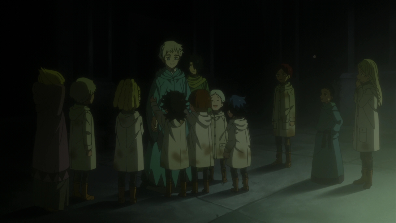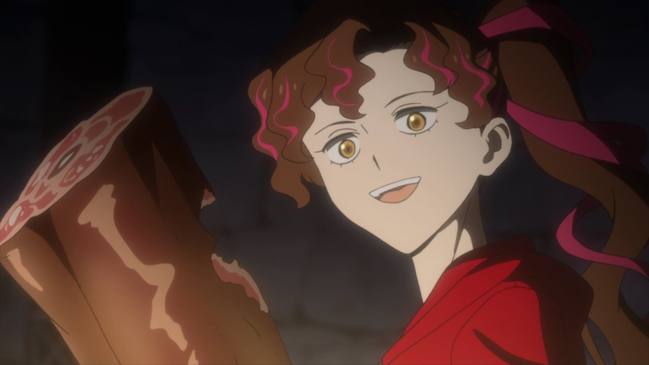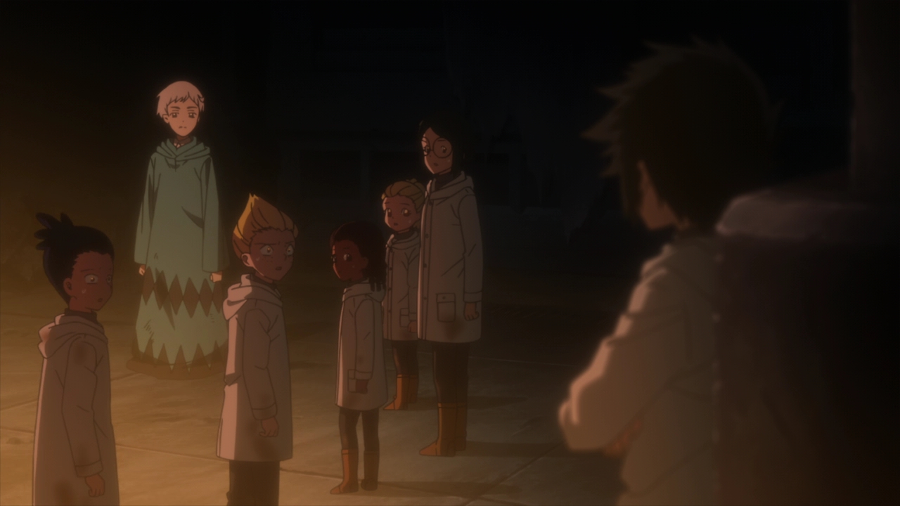 But this idea has been done before, and I always think back to Shiki with the humans vs vampires and the idea of one group needing the other for sustenance. Of course, Emma and Ray mention two demons they know of that haven’t degenerated from not eating human meat, which is Sonju and Mujika. Could there be exceptions and what would they do with them? It’s a good point to bring up, but now we have a tease that Mujika is probably evil? The Evil-blooded Girl is what Norman calls her, and there are some interesting shots of her in the OP. I did always find it interesting that they didn’t have degenerative problems, but Ray is right that they could also be lying. But with Sonju’s words of excitement for the future to hunt, they may not have been lying. Well, at least we have some mystery here.