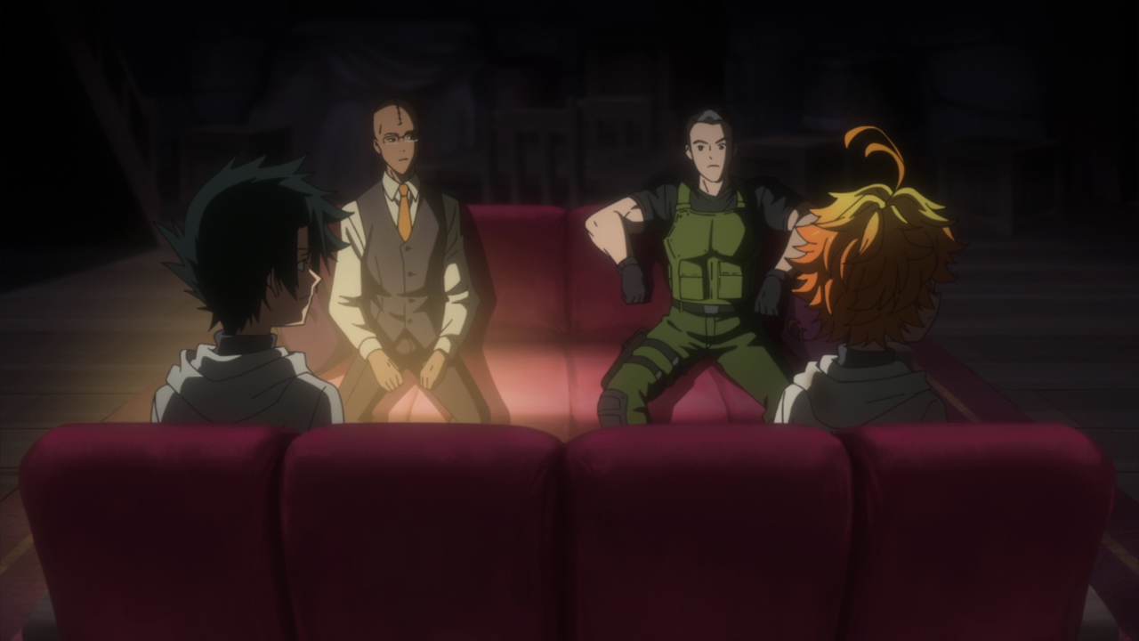 Interesting things were presented this episode but in the most boring way. Uninteresting camera angles, static shots, and just pure dialogue. Norman dropped some huge bombs such as Lambda, the child experimentation, the poison he created, etc. But what did this Lambda camp look like, and what kinds of experiments were performed on them? How were the kids chosen for this, and how did they escape? We got lots of information, but I didn’t feel any emotion towards it. We also got to meet Norman’s crew this episode, and while I can understand why Barbara is filled with so much hatred, I still can’t feel it. There’s just zero emotion for it because it’s just being told to us without the depth. It’s all surface level, and that drives me mad because surface level is not what I would ever call The Promised Neverland. Suspenseful, tense, horrifying, exciting, but these recent episodes have not been that at all. To be honest, it’s been the complete opposite. It’s just disappoinitng. :/