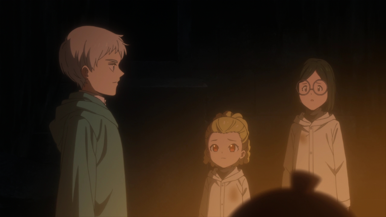 But this idea has been done before, and I always think back to Shiki with the humans vs vampires and the idea of one group needing the other for sustenance. Of course, Emma and Ray mention two demons they know of that haven’t degenerated from not eating human meat, which is Sonju and Mujika. Could there be exceptions and what would they do with them? It’s a good point to bring up, but now we have a tease that Mujika is probably evil? The Evil-blooded Girl is what Norman calls her, and there are some interesting shots of her in the OP. I did always find it interesting that they didn’t have degenerative problems, but Ray is right that they could also be lying. But with Sonju’s words of excitement for the future to hunt, they may not have been lying. Well, at least we have some mystery here.