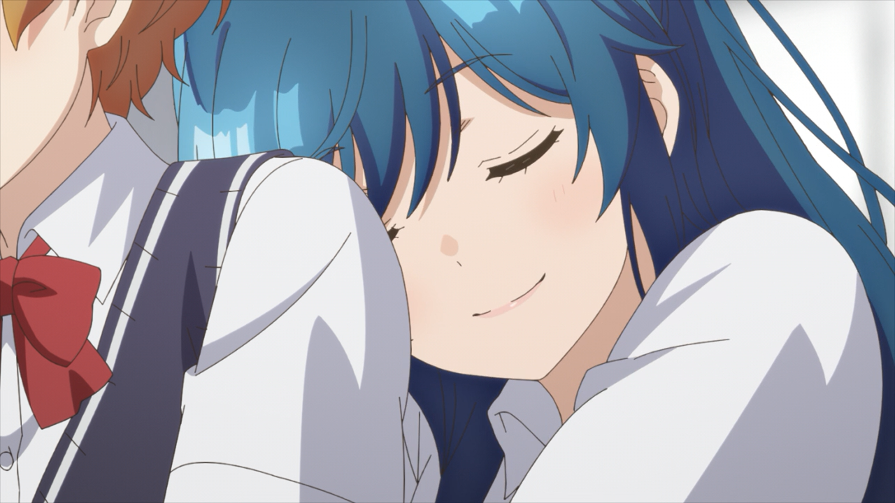 This week we finally saw Mimimi reach her breaking point. It was obvious how ever since she had crushing lost against Aoi in the Student Council race (416 to 131), it was obvious that she wasn’t okay. Mimimi had been overworking herself in desperate attempt to finally get a one up against Aoi. Sadly, despite all of her effort, she would lose time and time again. Mimimi respects Aoi, she looks up to her, she wants to shine like her, but after experiencing so many losses against her, it has finally taken a toll on her. Ugly feelings of jealousy grew more and more in her heart, and she was disgusted with how internally her heart was acting out as a sore loser. As result she felt like she had to quit the Track and Field Team because she didn’t want to be a part of that with such resentful feelings. Fortunately Fumiya and Tama were able to pull Mimimi aside and on various occasions allowed her to open up about her feelings, but also take care of her. It was very touching when Fumiya told her that to him, she is already shining, and how Tama told her she will always be her special hero. I have really come to love this trio a lot because they unexpectedly mesh together quite well. (Though I could really live without her weird sexual harassment antics to Tama). So I am glad that Mimimi was able to talk about the ugly and twisted feelings that was corrupting her heart. She needed to get that off her chest so she could properly slap the reset and know it’s going to be okay.
