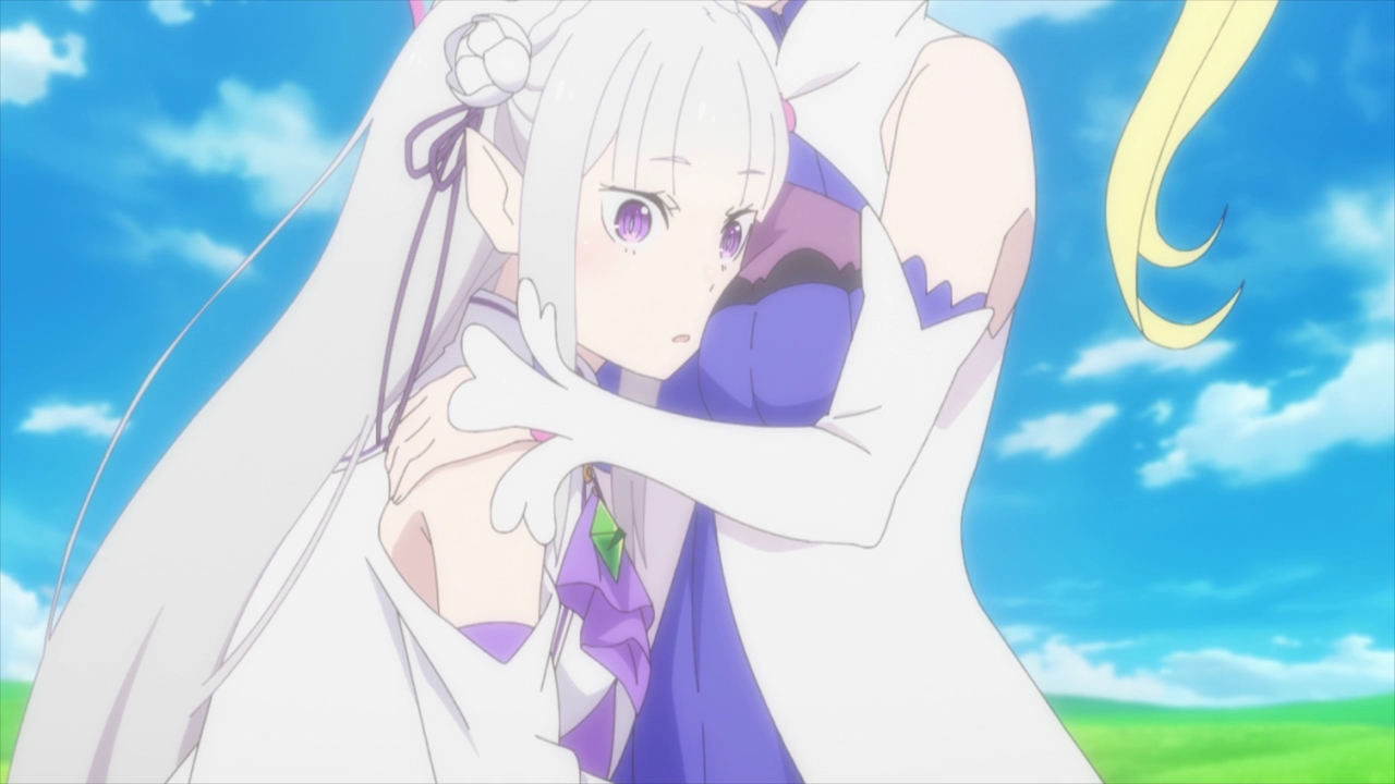 Either Minerva knows who Emilia’s mother is, or Minerva is Emilia’s mother. And honestly I think it’s the latter! Minerva being the one to greet Emilia at the tea party is too significant to ignore, and she is a witch, and Echidna repeatedly called her the daughter of a witch. And why else would Minerva hug her and refuse to let her look back at her? Why would she cry after Emilia says that Fortuna is her mother? And why hug her when she supposedly has never met her? There’s way too much happening here for it to just be a random encounter thrown in. And they sort of wear the same type of clothes? Or maybe I’m reaching there. Still, this is an interesting turn of events.