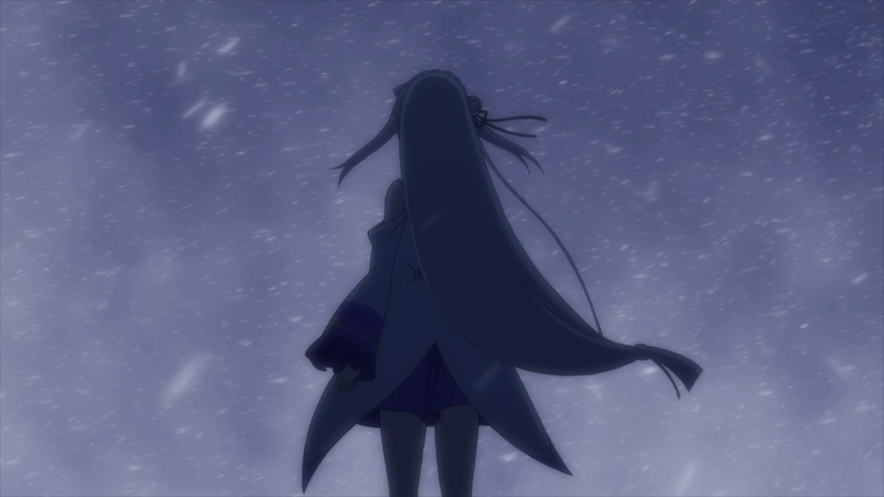 Roswaal, on the other hand, aware of Subaru’s ability, only sees this straying from the path as a temporary thing, as preparation for the true timeline, and therefore he deems the contract’s conditions as not having been satisfied: Ram confronting him now as “premature”. He doesn’t disclose Subaru’s ability, of course, but makes his stance clear in that he doesn’t believe the world has reached a point where he ought to freely allow Ram to kill him. And as such, he opts to fight Ram with the aim of making it snow afterward.