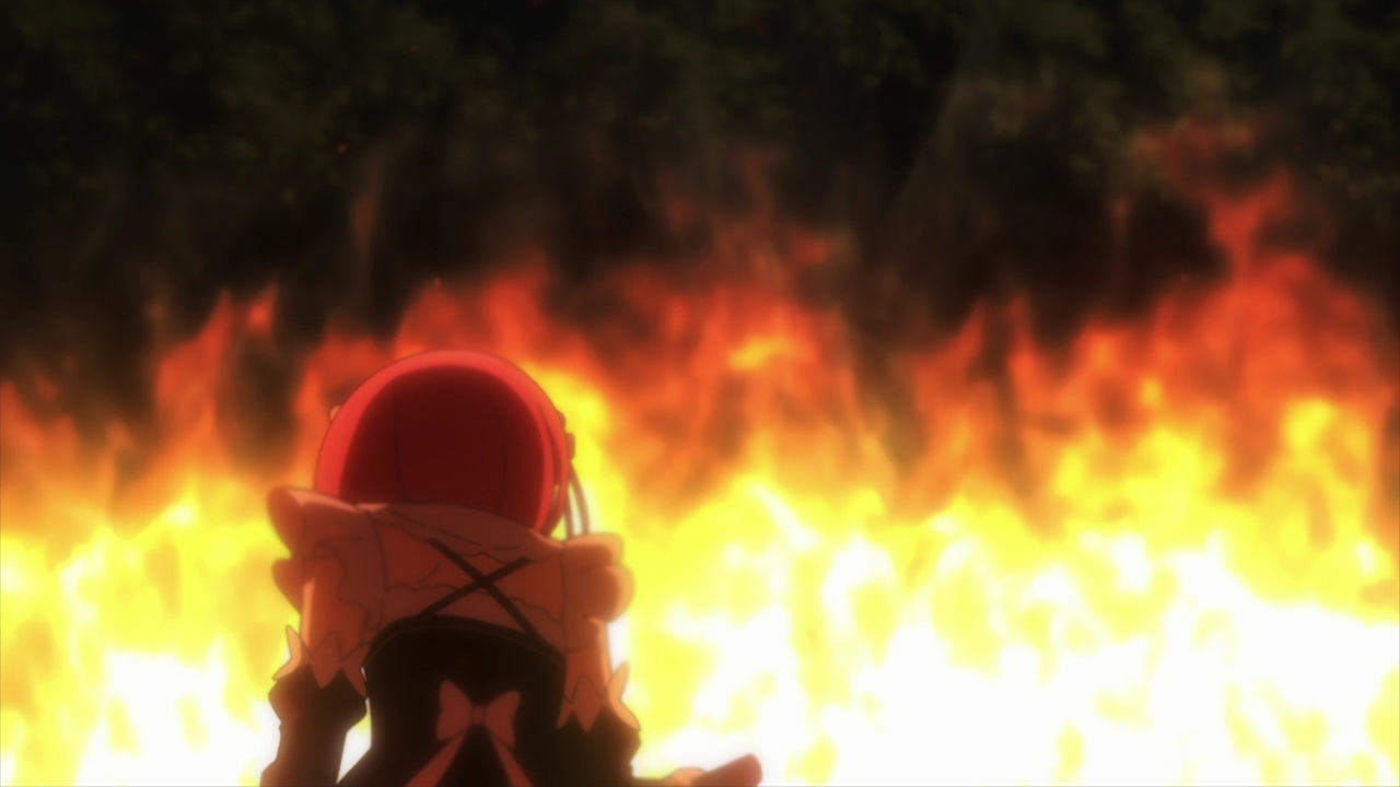 Now…I still don’t quite understand Ram’s love for Roswaal. I’m trying to rationalize it, but honestly I just don’t like it. This is the man that took part in destroying her village and killing her people. And now she loves him? Even he doesn’t understand and neither do I. This is pretty much a Stockholm Syndrome type of thing going on and I just don’t like it, I never liked it. Is it because she took pity on him? She looks up to him? He supplies her with mana and she’s grateful? Seriously, what the hell is going on here? I just don’t like it, so it’s sad that Ram is doing so much for a man that would happily dispose of her (as we’ve seen in a past timeloop). Like…Garfiel is right there! Stop wasting your time on this creepy clown. And I love Ram, seeing her get blasted like that hurt my heart. Please be okay! Please Puck tell me you saved her! T~T