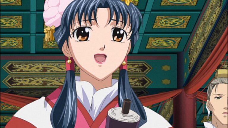 I’d like to point out that while the animation of faces in large scenes like this one continues to have some imperfections, you cannot deny the skill and talent it takes to animate a beautifully detailed scene such as this one. The details in the decorations, the king’s throne, and the clothes worn by Shūrei, Ryūki, Shūei and Kōyū – the animators at Madhouse did a spectacular job overall with Saiunkoku Monogatari (in my personal opinion)!!