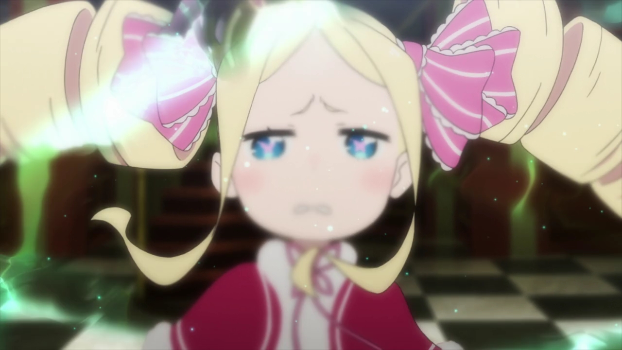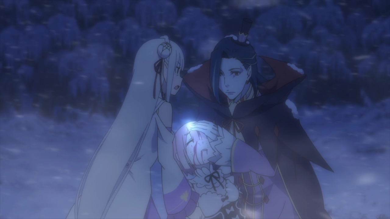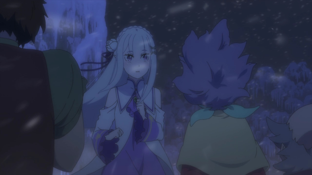 We immediately pick up where we left off, and while the barrier around the Sanctuary is gone thanks to Shima and Emilia completing the trials, there’s still the problem with the snowstorm, the great rabbit, and saving Beako back at the mansion. Compared to last week’s quicker paced episode, this went felt a little slower. And while I was happy with the Beatrice development, I did feel like it was drawn out and repetitive.