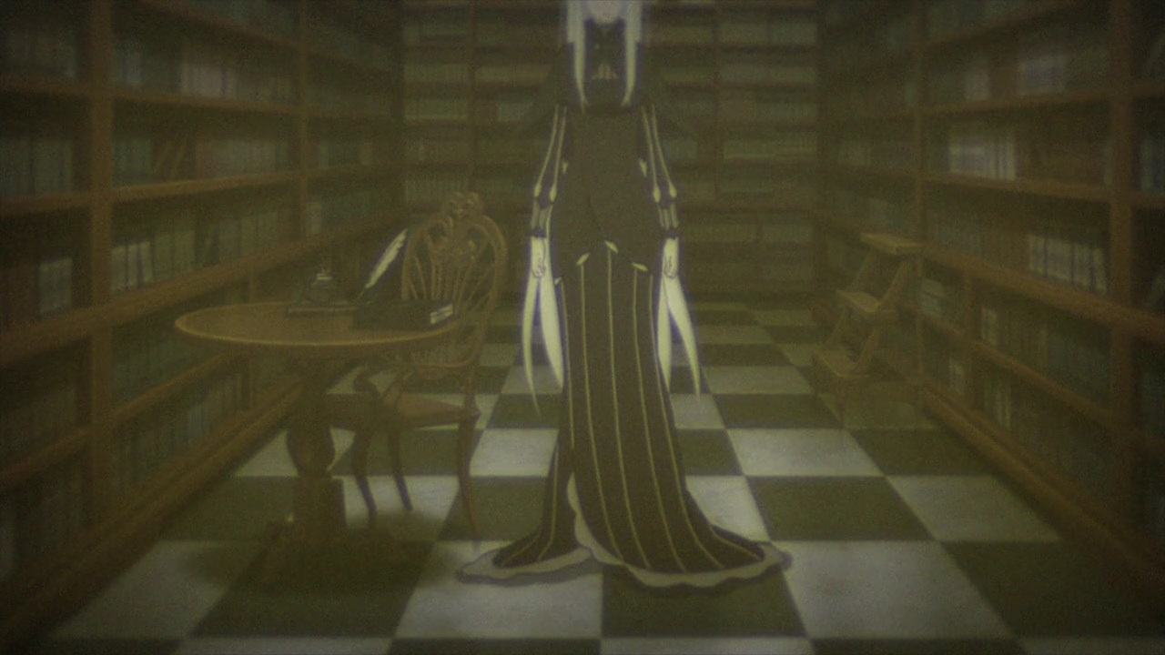 Be that as it may, the question remains as to what happened to Hector (seeing as next to no one remembers his existence) and in particular to the Melancholy witch factor. It is apparent from the scene in this episode that Hector was not permanently defeated in the last encounter (which would make sense if the barrier simply made him lose his way), and Echidna was clearly expecting him to attack again eventually anyway. (The scene has to take place after what we’ve seen in episode 20 since back then Beatrice knew nothing about the library, nor would Echidna state as matter-of-factly that Roswaal couldn’t handle Hector.)