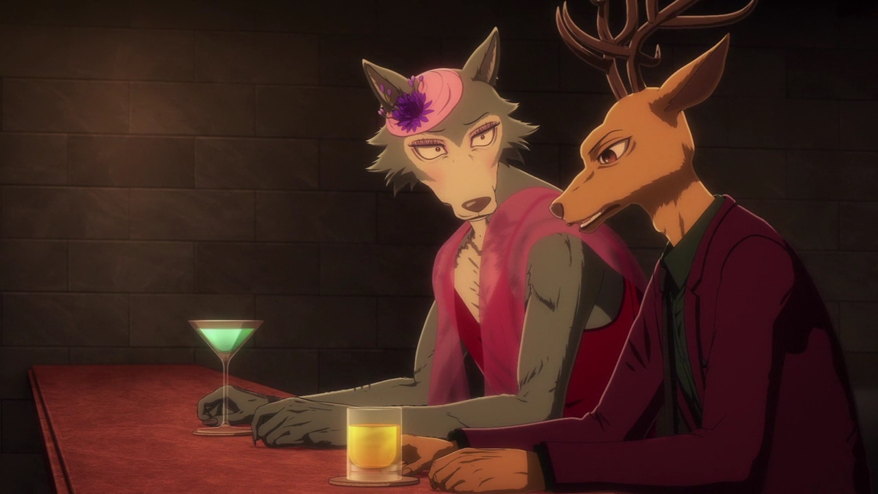 The scene in the bar was equally as weird, but also so funny. It took me completely by surprise and everyone’s reactions and the second-hand embarrassment from it all had me laughing quite a bit. Maybe it took away from the seriousness of the situation for a bit, but I do like it when Legoshi and Louis have lighthearted moments like this. Also, and I keep getting this feeling from Louis, but there was a bit of a romantic air about them. And I find it kind of telling that in the moment when Louis realized he actually loved carnivores, it was Legoshi’s face that showed up. Not Ibuki, not the whole Leo group he knows, or the drama guys. Maybe it’s because Legoshi has had the most impact in his life, and that’s most likely it, and he’s genuinely concerned for his safety in his fight against Riz…but that was interesting. He loves carnivores and he thinks about Legoshi. I don’t know, I thought the same thing with that one scene with Juno so apparently Louis exudes sexual tension for everyone or something. ¯\_(ツ)_/¯