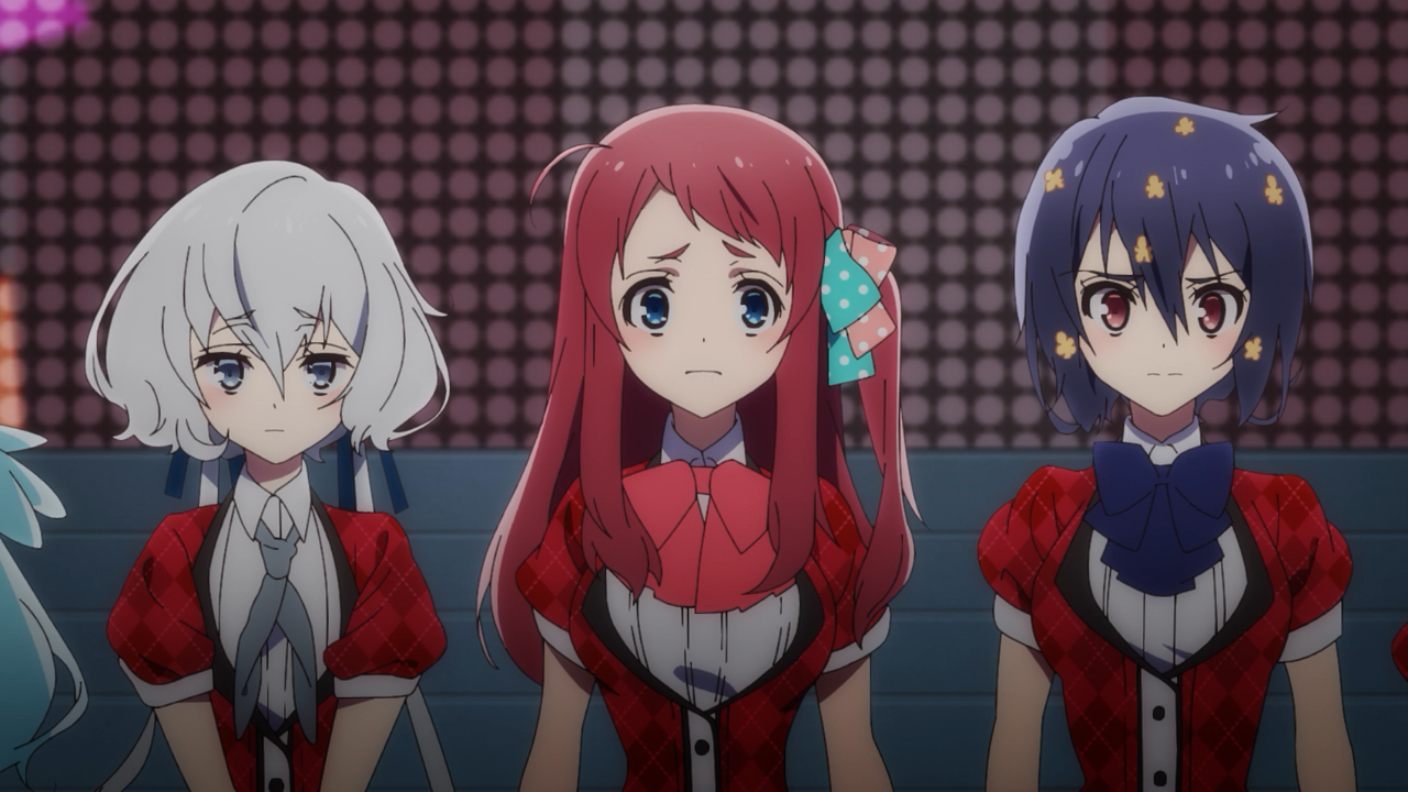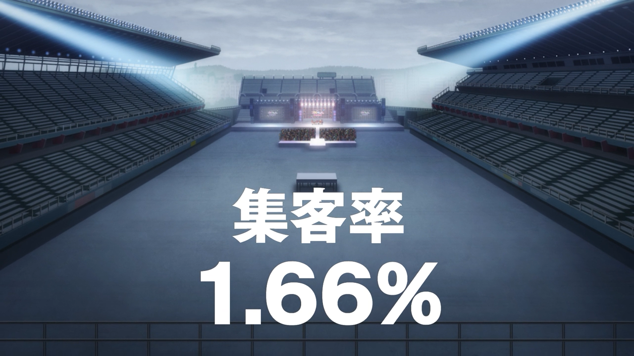 Zombieland Saga is back, and the first thing we learn is that Franchouchou shortly after they found gained a lot of publicity from their concert at Arpino, which helped sell their their first CD sold like hotcakes (gorgeous album cover by the way), they ended up with a huge debt. It came about after a spectacular blunder where Kotoro got ahead of himself when he decided to book a concert at Ekimae Fudosan Stadium (EFS). Unfortunately, only 1.66% of the tickets were sold for the 30,000 seat stadium, leaving them saddled with debt. OOF. So since then, incredibly the girls have been working part-time jobs to help dig themselves out of it, all while Kotoro has been drinking in despair.
