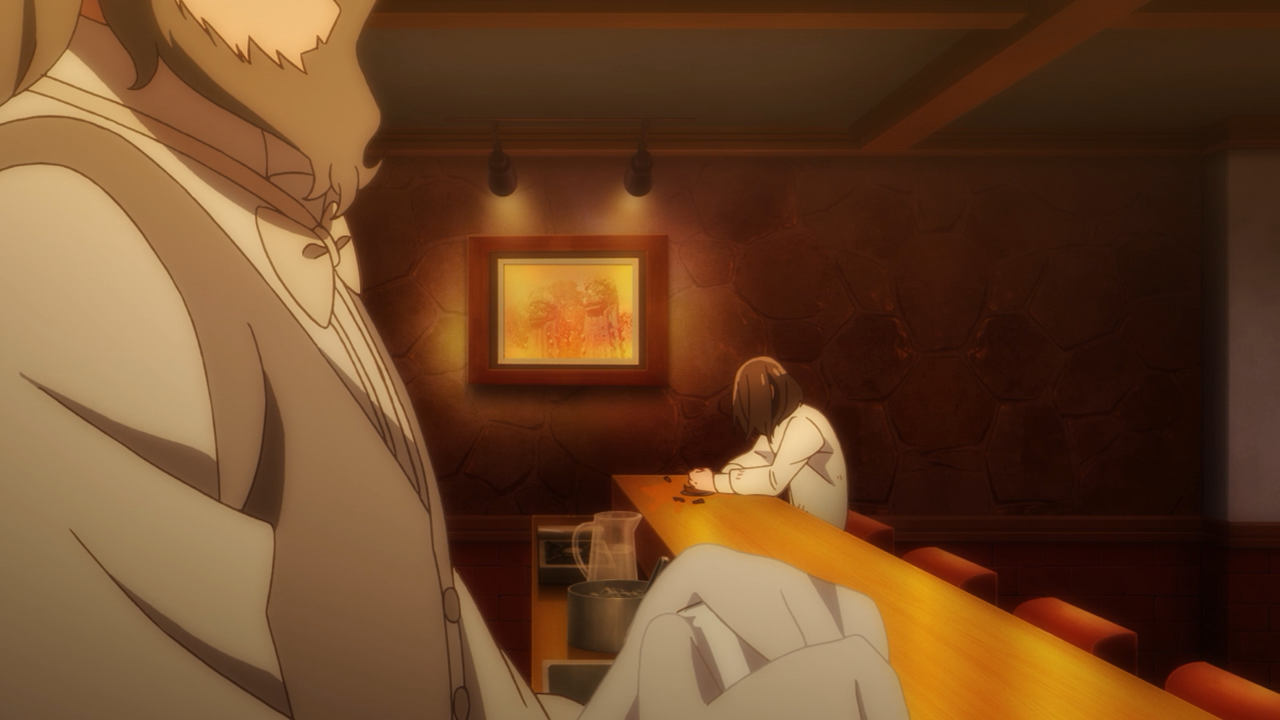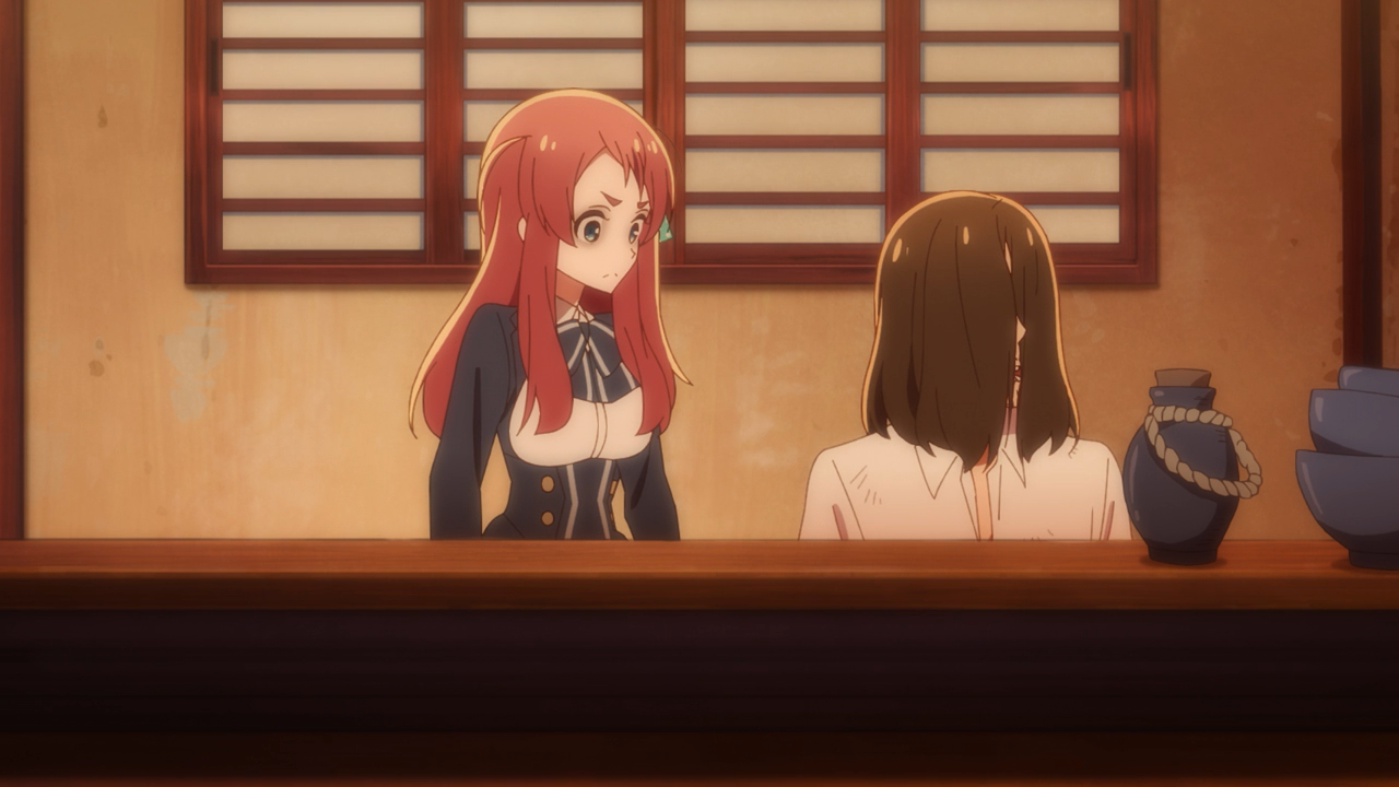 It was nice to see the girls again, especially with how they are all going about their new jobs. Sakura and Ai seem to be in charge of the makeup while Kotoro was sulking away at the bars. Luckily it was enough to get them all by so they could all get a job without much of an issue. But it was a nice touch to see that it still wasn’t perfect, as the ladies at Ai’s work place would point out how she always looks sickly. I also couldn’t help but think to myself, “I hope that’s waterproof this time!”. It was also hilarious to see them decide to raid Kotaro’s office in hopes to find clues as to why he is so down in the dumps. Hilariously Sakura, who was worried about them breaking something was responsible for breaking his guitar! Hahahaha! However this incident with Kotoro was important in a way of making the girls think about why he is in such a hurry and distress. Yugiri also one who happened to overhear him about his fears of being “wrong”, while he was vomiting.