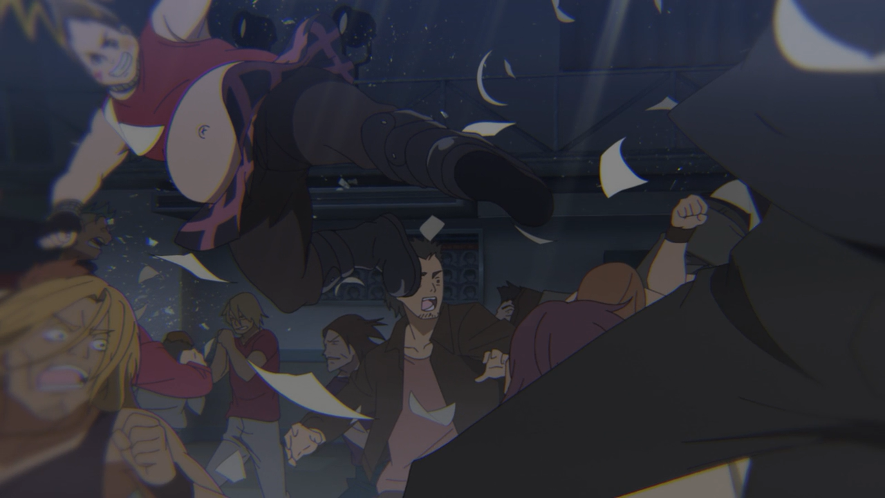 Sakura also made an effort to bring Kotaro back home again, as she wanted to help him as he had helped her when she went through her slump. But while she wasn’t able to reach him, the old man at the bar successfully provoked him into revealing where his true heart lies, which is his uttermost faith in the girls. Poor guy, doing his best to support them in a frustrated crowd of metal fans screaming for an encore, he got a real beating for it, which prompted the riot, but hey, it worked, eventually the crowd started to listen and they were able to perform. In the end, that was all that really mattered.