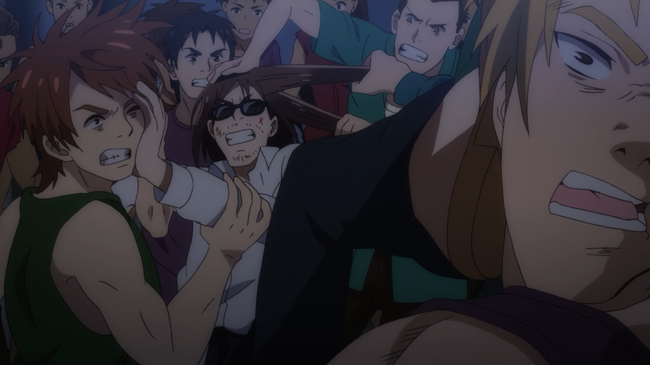 Sakura also made an effort to bring Kotaro back home again, as she wanted to help him as he had helped her when she went through her slump. But while she wasn’t able to reach him, the old man at the bar successfully provoked him into revealing where his true heart lies, which is his uttermost faith in the girls. Poor guy, doing his best to support them in a frustrated crowd of metal fans screaming for an encore, he got a real beating for it, which prompted the riot, but hey, it worked, eventually the crowd started to listen and they were able to perform. In the end, that was all that really mattered.