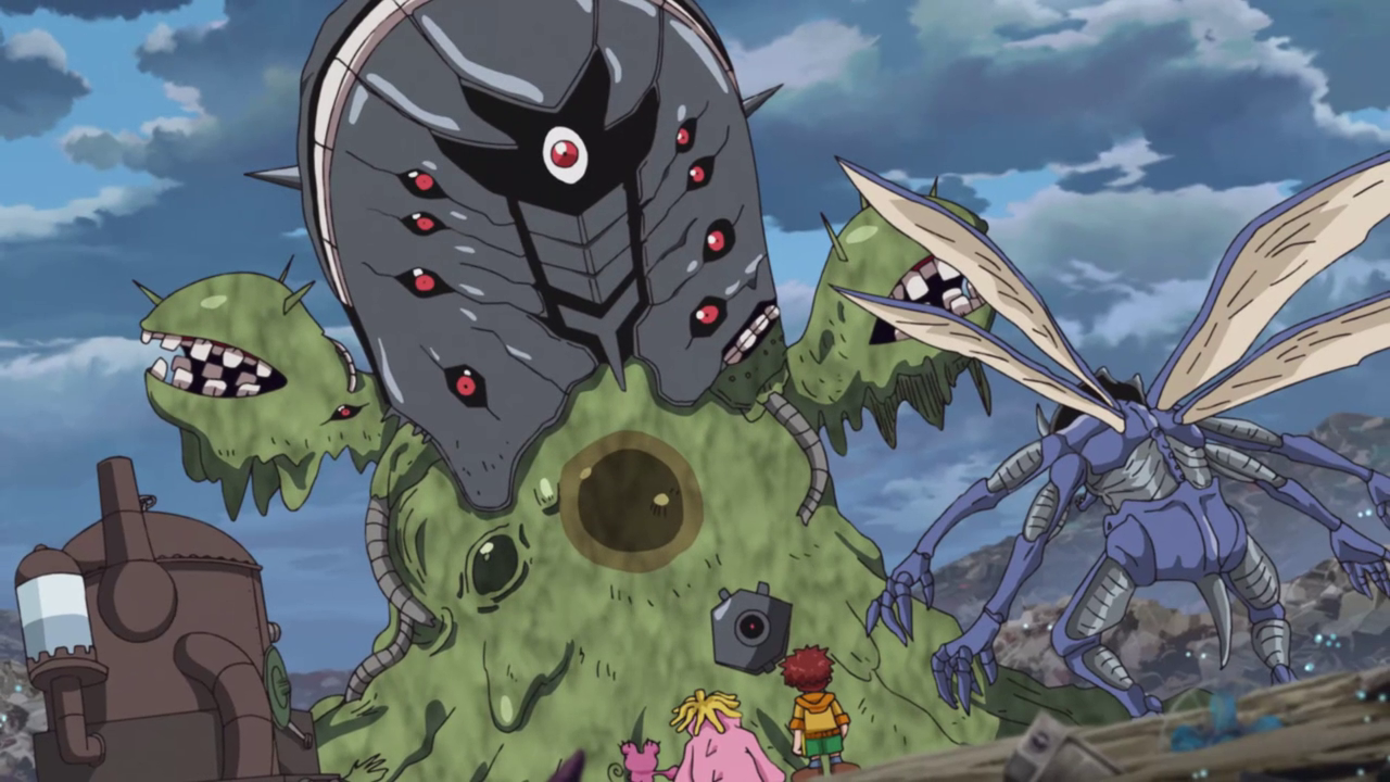 The two then semi-team up to attack the kids since there are rumors going around that every Digimon that challenges them never makes it out alive. Like… yeah… that’s basically how it has been and when put in that perspective… it sounds especially brutal and mildly disturbing. Especially as opposed to the original series where the kids only “killed” the Digimon that were actually evil. They didn’t go around slaughtering the rando Digimon that were out on rampages. Sure they beat them up, but they didn’t straight up kill them unlike in this series where IT’S SURVIVAL OF THE FITTEST I GUESS.