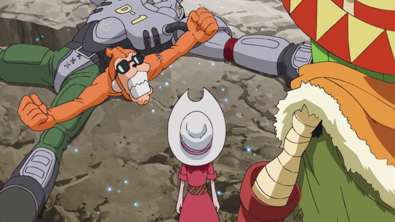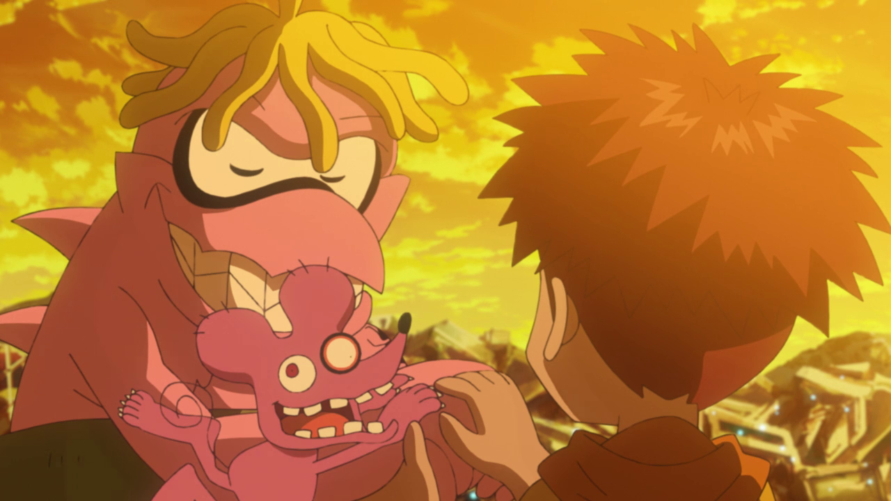 It was nice seeing Koshiro lead the charge this time without getting into “I’m just a support character” mindset. Which probably is a small nod to his growth when he stopped the missile from falling in Japan. And I do like that they’re trying different tactics to defeating an enemy besides just simply overpowering them and instead used science to defeat Rareraremon (still the dumbest name yet). Which makes the fights more interesting and won’t always default to evolving to a higher stage to sweep. And I found it rather touching that Tyumon evolved into Searchmon out of inspiration from Koshiro’s knowledge, donning his crest on his back. We’re seeing a lot of armored evolutions these days.