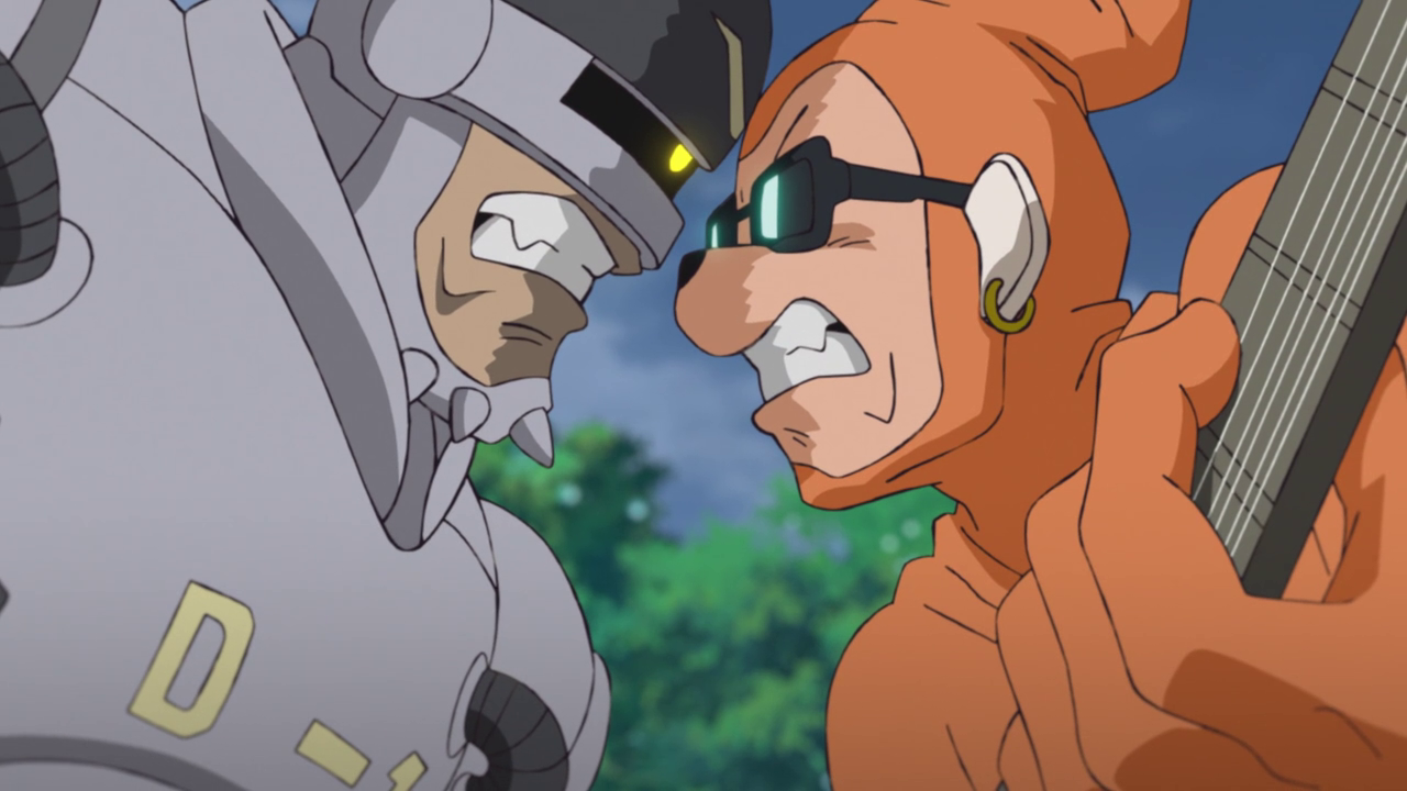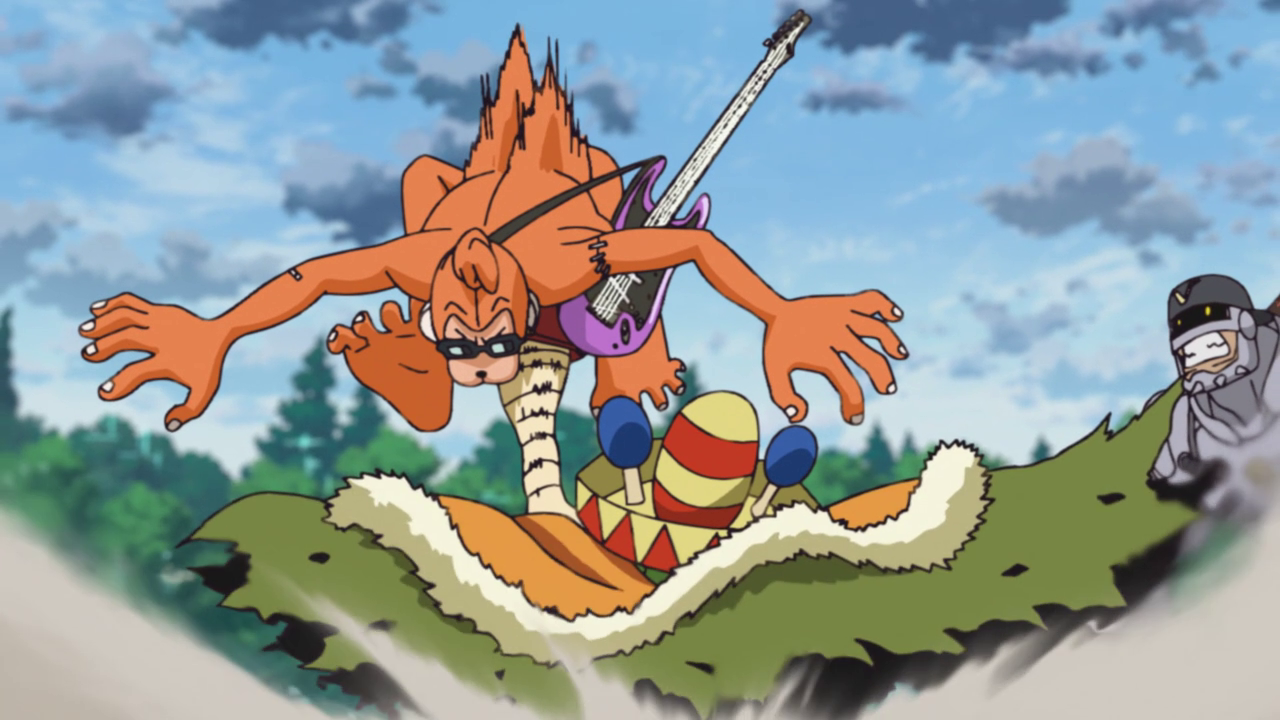The kids are continuing their excruciatingly long journey towards FAGA and Tailmon is having a difficult time figuring out the road from her memories due to the change in landscape. However, they run into a couple of ultimate Digimon fighting over the title of “King of All Digimon” with the power of song… Did Digimon turn into Hypnosis Mic or something? Either way, it was amazingly hilarious to watch these two Digimon basically rap battle each other. Made to be even more chaotic when their sound waves were disrupting the Digimons’ data. Which was a little weird since they were the only ones to be effected in that way while the audience of Digimon were fine. Maybe it was because the Digivices were being affected? It was a bit unclear. However, it was pretty hilarious how everyone was affected.