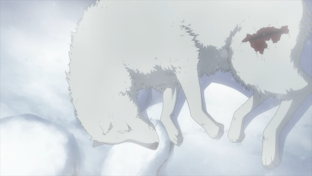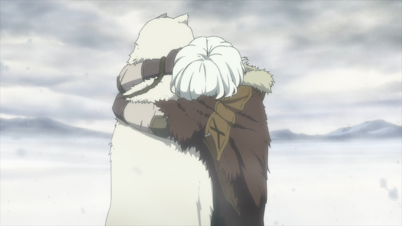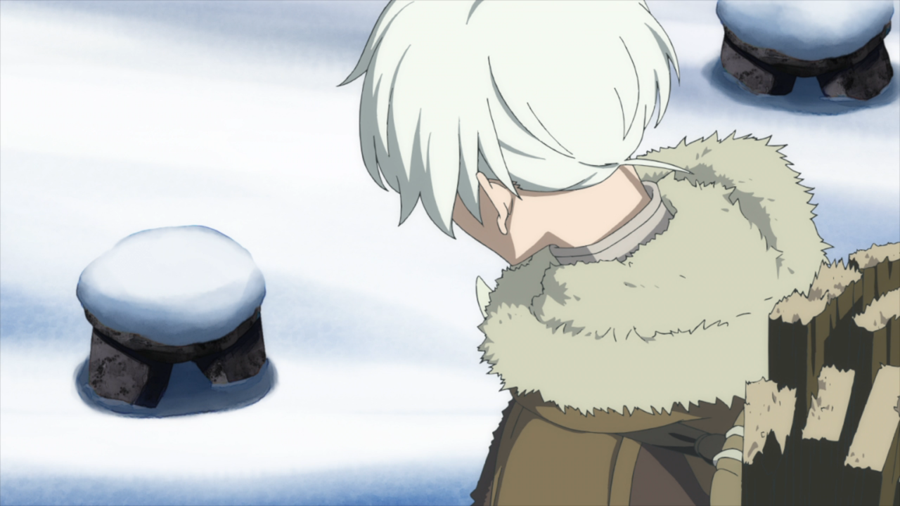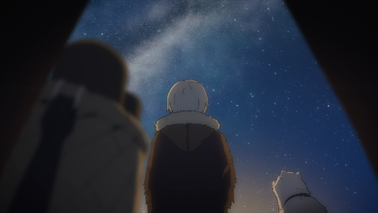 I didn’t think too much of it, but I appreciated that the only speaking individuals in this episode were the narrator and the boy. And after a while, the concept of a narrator faded to the distance so it really was just the boy talking the entire time. That really packs a punch because we can see and hear just how alone he is in the village. He stayed behind while everyone packed up for paradise, and he was left to care for the elders and was eventually left alone as they all passed away. He loses his wolf companion for 2 months and finally has hope upon seeing his friend again. With nothing left in the village, why not go join the rest? And here’s a spot where I’m not too sure of the situation. Did he genuinely believe that the people from his village were still alive and made it to paradise? Or was he just telling himself that… and he eventually believed it? It’s by this point that I’m sure a lot of watchers whispered an ‘oh no’ as we could see the pain on the horizon. What happens if he doesn’t make it? What happens if he finds remains? But nevertheless, he kept on going and I just wanted him to be happy.