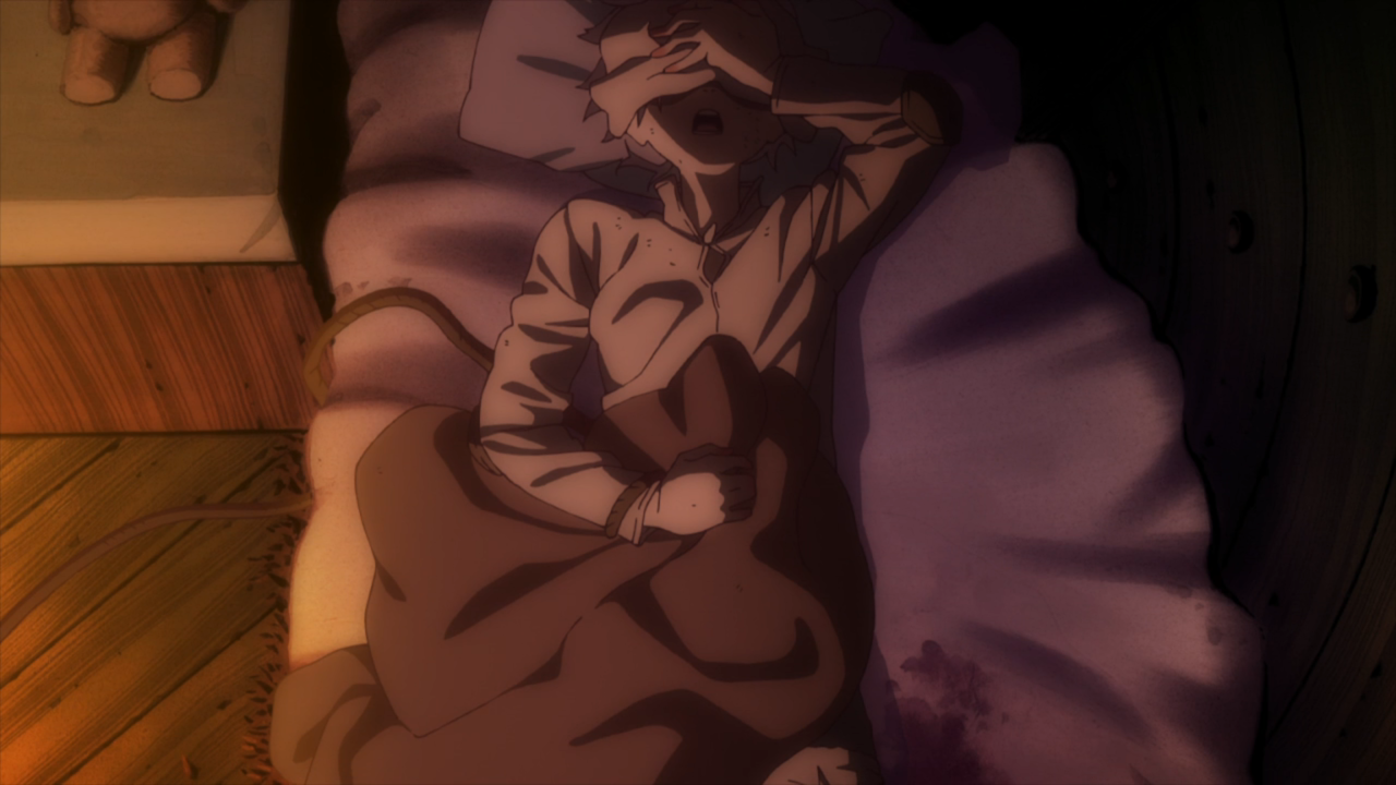 I know this episode is really just setting up the rest of the anime in helping us understand exactly who this immortal being is and how he became who he is, but they just did not hold back any punches did they? The first thing that gave me that twinge of sadness was when “Joaan” returned to his owner after two months. Because deep down I already knew that Joaan wasn’t going to come home. Part of me was hoping we’d reach the “You’re not really who I think you are, but we still have a bond nonetheless” between the two because I genuinely thought they were going to be a pair till the end.  (I mean… arguably they were, weren’t they?). And there were some cute moments between the two, even just with the boy teaching “Joaan” how to eat so it was definitely possible. But unfortunately, you could definitely see the boy’s downfall coming from early on. I just didn’t want to see it. I wanted to hold onto hope just like he was and I think that really backfired on me.