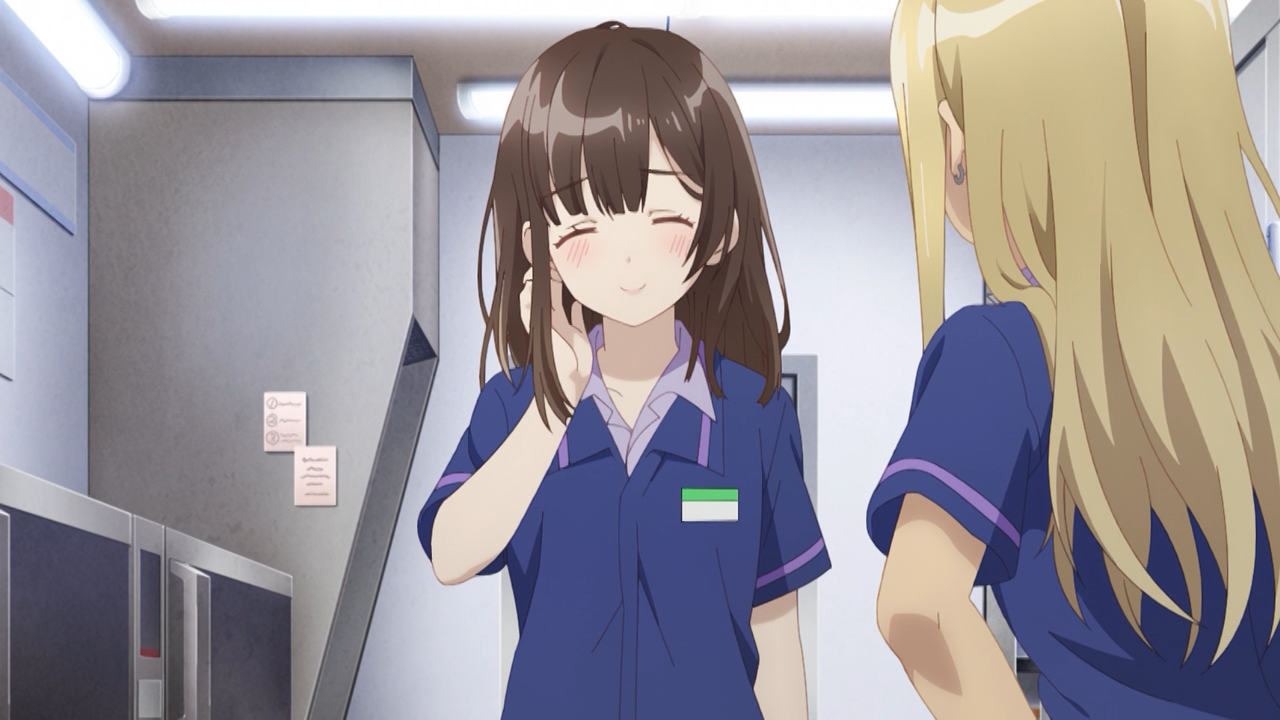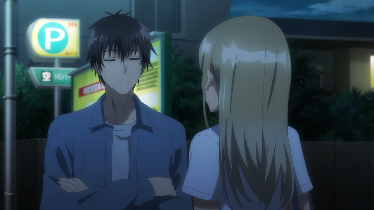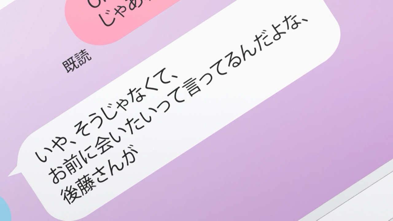 This week Sayu has gotten herself a part-time job at a convenience store where we were introduced to Asami, a co-worker her age. Asami is the friendly type, so she was quick to get to know her, but she is also quite sharp-minded. Although Yoshida and Sayu tried to come up with the story of why they are living together, Asami saw through their lies and called him out on it when they had a chance to talk alone. She seems to be the type of character who has a good read on people, especially since she has already noticed that Sayu has a variety of smiles that don’t reflect her true feelings. That’s why she acknowledged Yoshida to be a good guy and gives him a piece of advice, warning him that Sayu is good at using different smiles to conceal her true feelings, so he needs to be careful of that. I don’t think she means it is malicious in any sense, but rather to be vigalant of kind of emotions are being concealed behind the mask. Fortunately Yoshida is already onto that, as he has noticed just being she is smiling and says she is okay, doesn’t mean that she actually is. So it becomes yet another thing we see him deeply reflect on how to address it. Heck even during his supper with Gotou, he couldn’t take his eye off his phone at first because he was worried about what Asami had said.