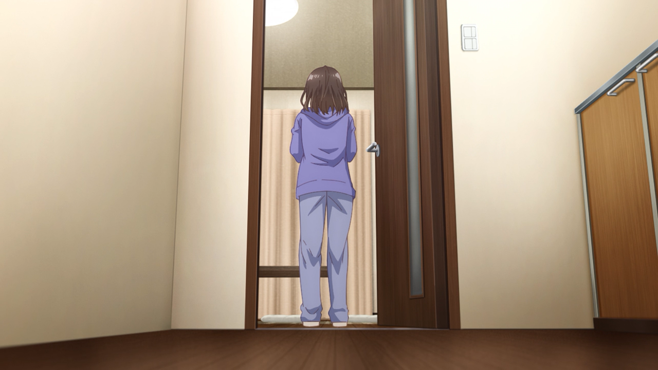 We also saw just how fragile her state of mind is. Even though Yoshida has assured her she doesn’t need to go anywhere, the moment she heard he was bringing Gotou home, she thought that meant the end of things. In all fairness, that is probably one of the many patterns she has experienced that led to her being kicked out. Fortunately Yoshida was able to quickly clarify to her (before she got any ideas of running away again) that it was because Gotou wanted to meet her.