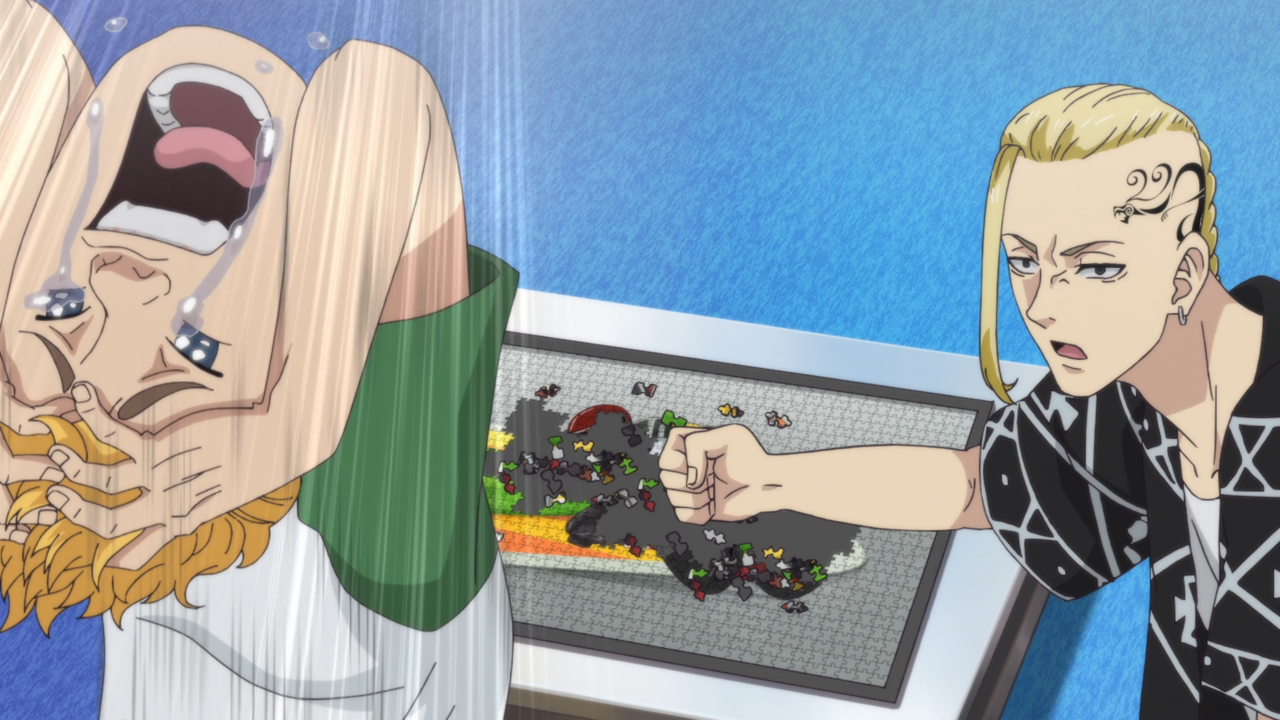 From the hospital onward, the episode was really stressful. We were consistently given mixed signals about Draken and Mikey’s relationship. Takemichi’s friends seem to laugh off the situation saying that they fight all the time. Which is totally believable. Despite how cool both of them act, they’re still just middle schoolers and act like kids! I mean just a couple of episodes ago Mikey threw a fit because he didn’t get a flag in his kids’ meal. I can totally imagine him getting huffy at Draken for literally any reason. But when the two finally come face to face with each other it is pretty evident that they are not currently on good terms. Which is unfortunate because so many of Takemichi’s treasured possession end up getting smashed in the process. A 72-hour puzzle is one thing, but out right smashing memories with his dad or a successful homerun? Ah that’s a bummer. Especially considering these things might have more sentimental value since Takemichi is travelling to the past.  I’m high key looking forward to the next episode to see if he puts them in their place for smashing his stuff. Even better if him doing so gets them to make up.