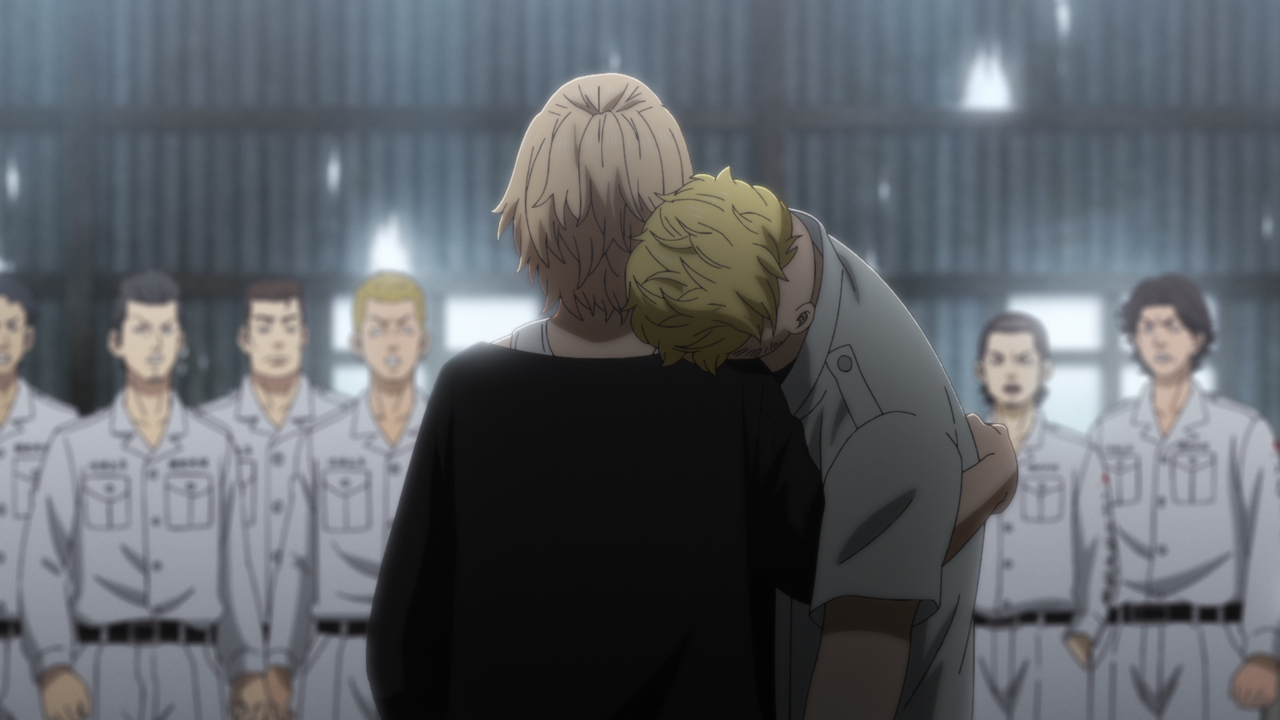But I still have to say I have respect for Mikey in that he does stick with his group. He isn’t ready to abandon them immediately like the Moebius guys were to Osanai. Granted the police still caught up to a lot of them, it still shows the values that Mikey holds. And alternatively, I really appreciate what Draken did in this episode. First, he calls out Osanai and Moebius from falling off the path of a delinquent. Yeah, they are delinquents and they cause problems, but even he admits there are instances where they go too far especially in the instance of rape and assault, especially of those not involved with the gang. Second, he’s also the one to tell them to take Osanai with them. Which in the moment is something both he and Mikey agree on.a They won’t abandon one of their own…