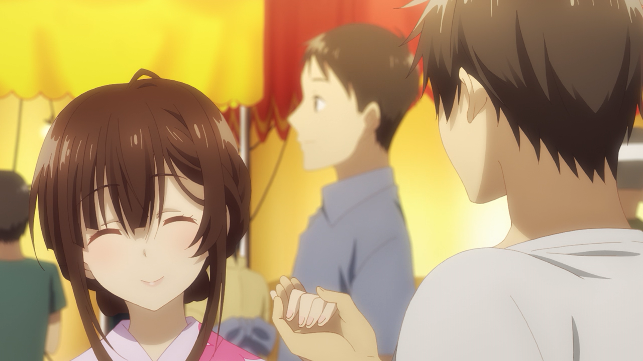 This outing also served a purpose of putting Yoshida’s feelings to the test. It certainly looks like the love he has for Sayu has been gradually leaning more towards romantic as opposed to the platonic/familial. (It was pretty funny how he was trying to avoid looking at her because he thought he was pretty in the yukata though! In the end it slipped out when she asked if he liked it, haha!) We can definitely see his emotions teetering back and forth between the two, from becoming more conscious of her to the point he is flustered to look at her, and holding her hand. But even so, he is adamant of making sure he doesn’t cross that line. And he did that today by encouraging her to return home instead of admitting there’s a part of him that would like her to stay by his side.