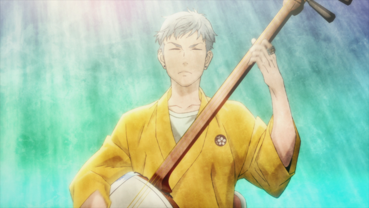 Unfortunately, Setsu was not the star of the show this time around and I’m okay with that. Once they framed it as a group performance and let the other characters shine, I was willing to let Setsu be support for the group. That does not mean he didn’t stand out. He was able to add a new sound into the mix to completely capture the audience. It softer and sits underneath everyone else to left up the sounds they are making. I like how they had multiple of the competitors approach Setsu after the performances. At first glance he was not the one to watch on the stage, but he was able to bring everything out and together. I’m bummed that they only placed top three, but when you only score on technicality it does make sense… And at the very least they won the judge’s special award, so I think that’s got to count for something. Plus! Hopefully Maimai is going to realize soon! She’s so aggressive in her desire to beat Setsu and show off how good she that she’s forgotten the fun in playing Shamisen. She’s only focused on the competition that it’s now muddied her sound. I hope that while she’s watching the individual competition, she’s able to have another epiphany!!