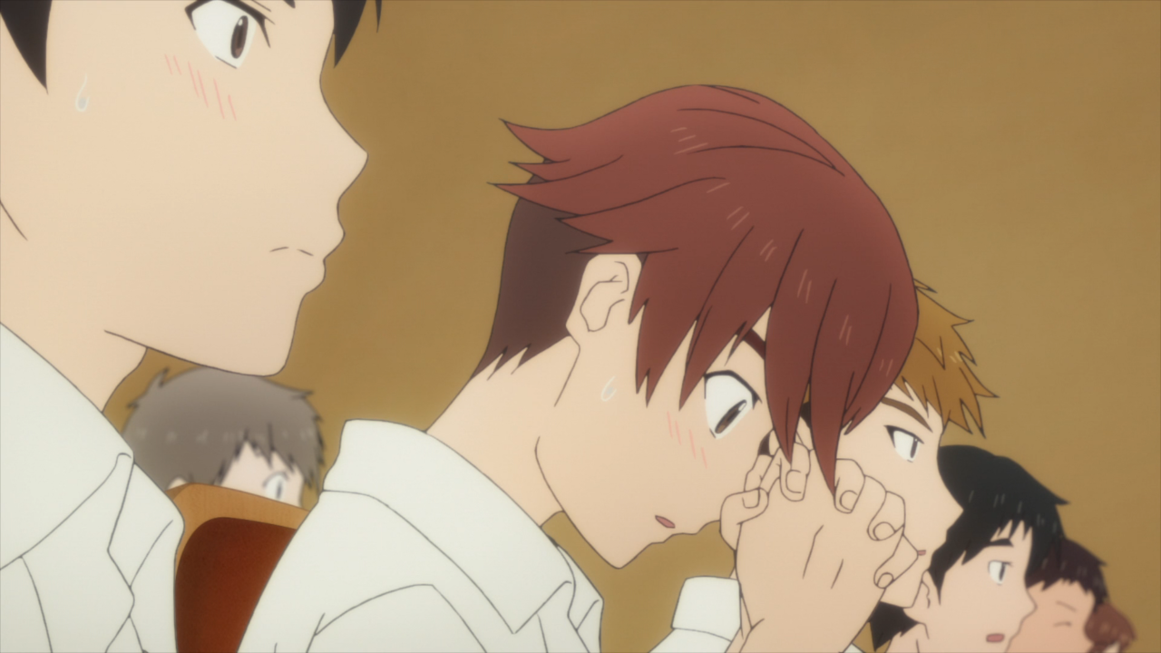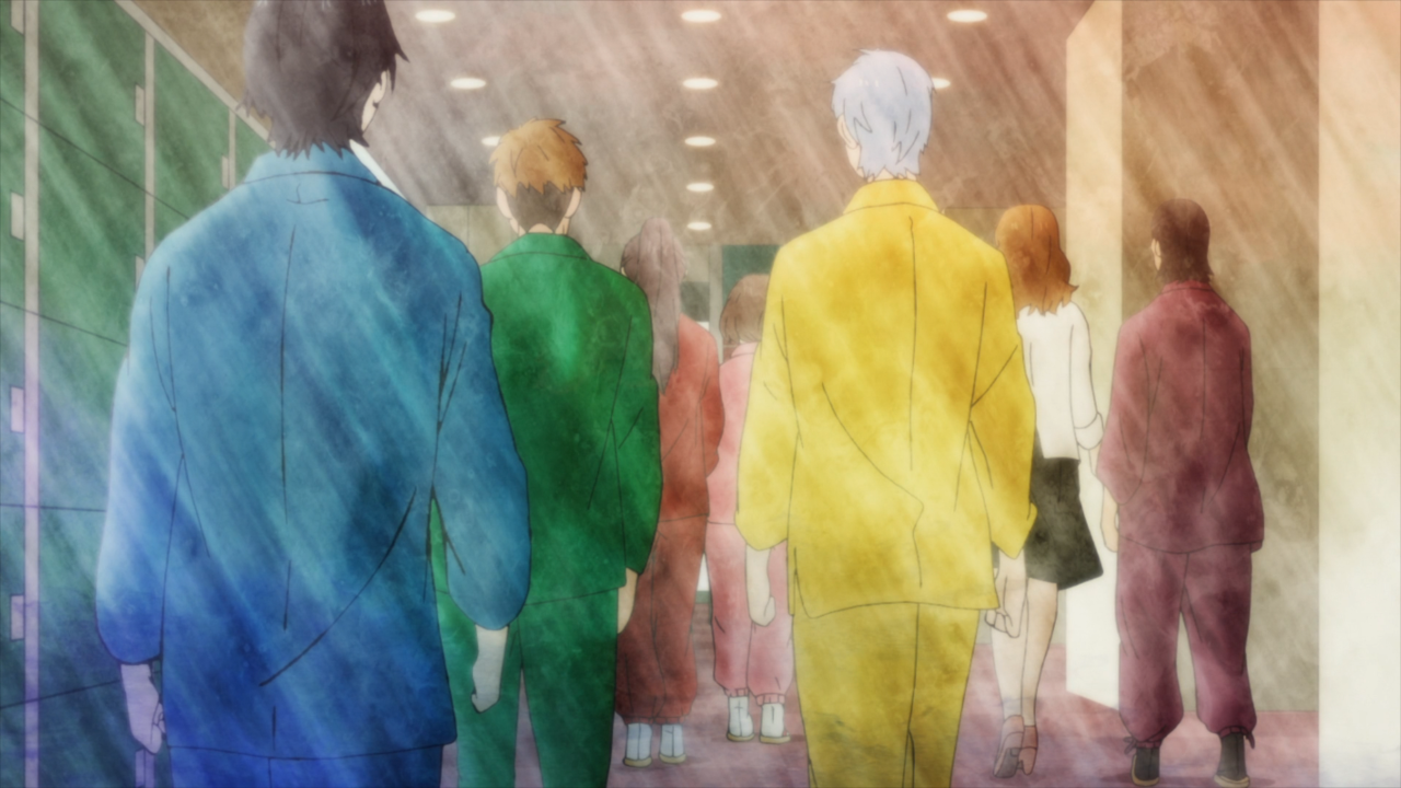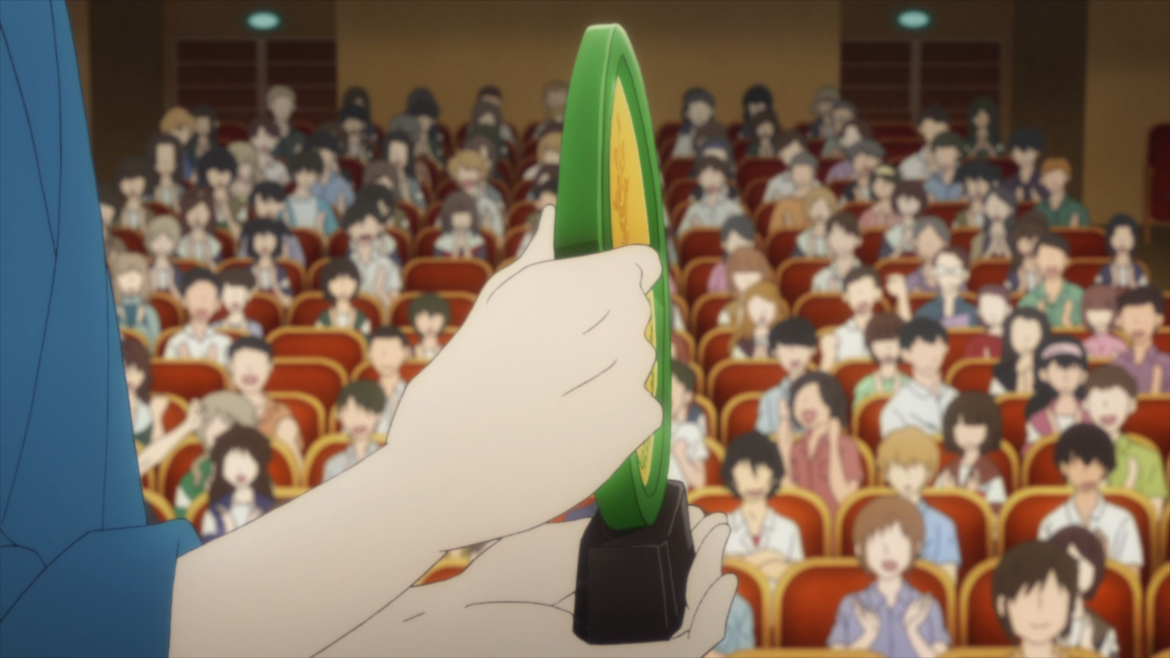 In some of my earlier posts, I talk about how much I love what this series does with duets. They turn into conversations with no words exchanged (some targeted thoughts, but nothing verbal) and the visuals that surround them really help us to understand the relationship one has with another. I love how it is used to push things further. I must admit, I was a little disappointed when we didn’t get something similar with the group performance. There were bits and pieces of it in there, but it really felt one sided. But there were some good things that came out of it. I’m glad that we got to highlight each member of the club and their personalities through their performance. Kaito starts off very strong and articulate, Yui is consistent and reliable, Shuri is playing with all her effort, and Rai is able to add the fun into the performance. It was a very nice way to show the strengths of each character since there has been a lot of self-doubt going on in the previous episodes.