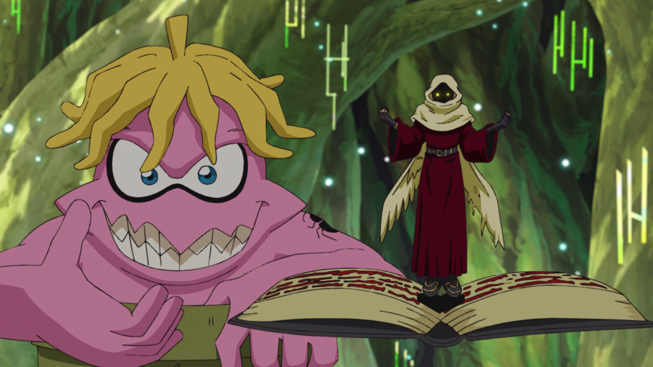 Literally after the battle with Millenniumon, the kids are summoned to a research lab of sorts. I’m not sure how much time passed, but they sure put together this place pretty fast. Too fast if you ask me. But whatever, we’re not talking about that. Gerbemon makes a reappearance and introduces Wisemon. I’m a bit wary of Wisemon because not only was he a minor villain in the Digimon game I’m playing, but he’s voiced by Show Hayami who has played some pretty shady characters. So unless I’m proven wrong, this guy is on my sus list.