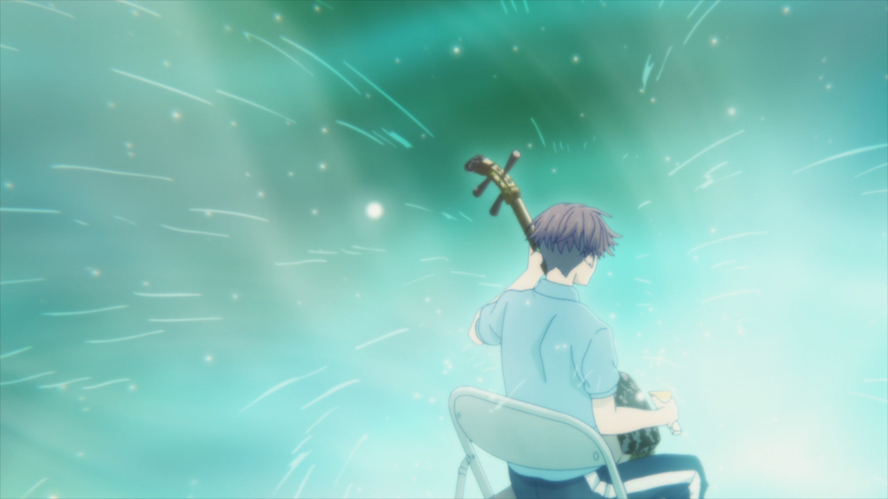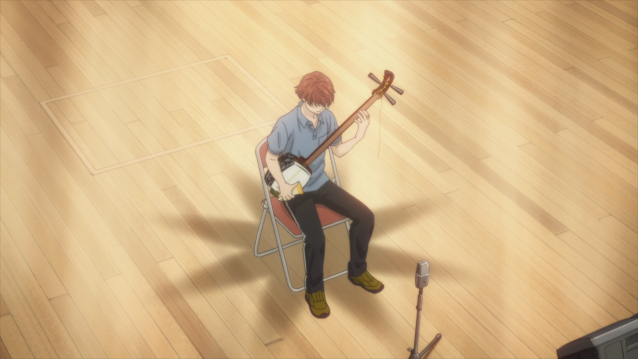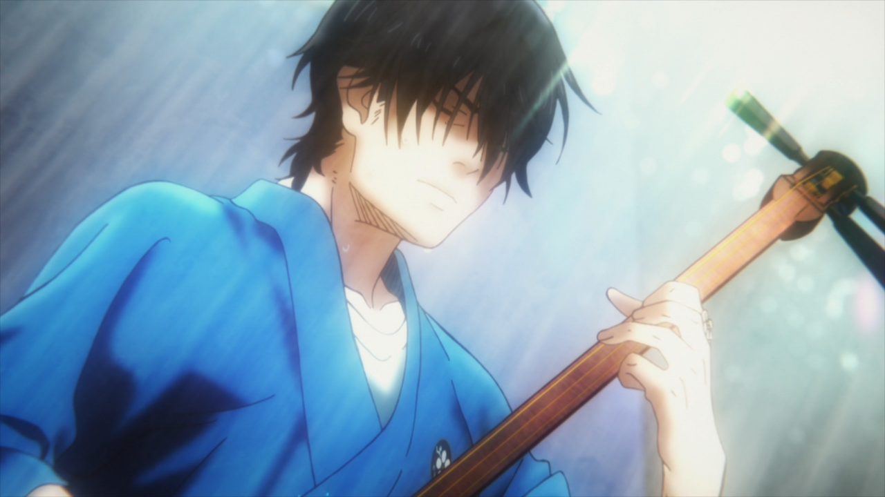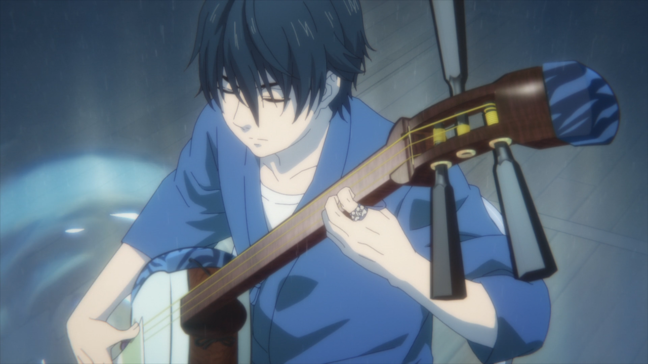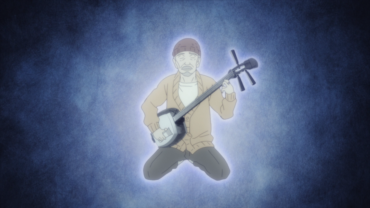 Visually, I think the performance played out this complex relationship with sound that Setsu’s been battling. He starts off very fluid, which is definitely more in his style, but over time the water becomes snow. As it morphs into snow, it feels as if we’re calling back to his grandfather’s sound. He’s stuck trying to replicate something that isn’t his, stuck in the past and essentially frozen in time. It also calls back to his grandpa’s younger years as he would travel around in the snow playing the shamisen for money. But at the end it returns to water as Setsu recognizes that he has created his own memories as well. His grandfather isn’t disappearing, but rather part of his own memories weaving their way into his sound. Good on Setsu for breaking out of what his mother wanted, I hope he’s able to wow everyone with those final notes.