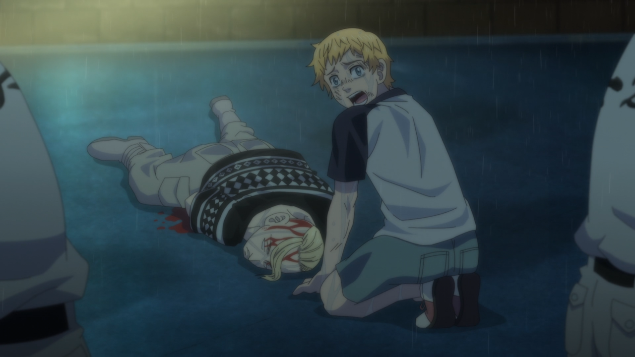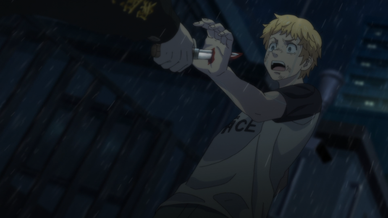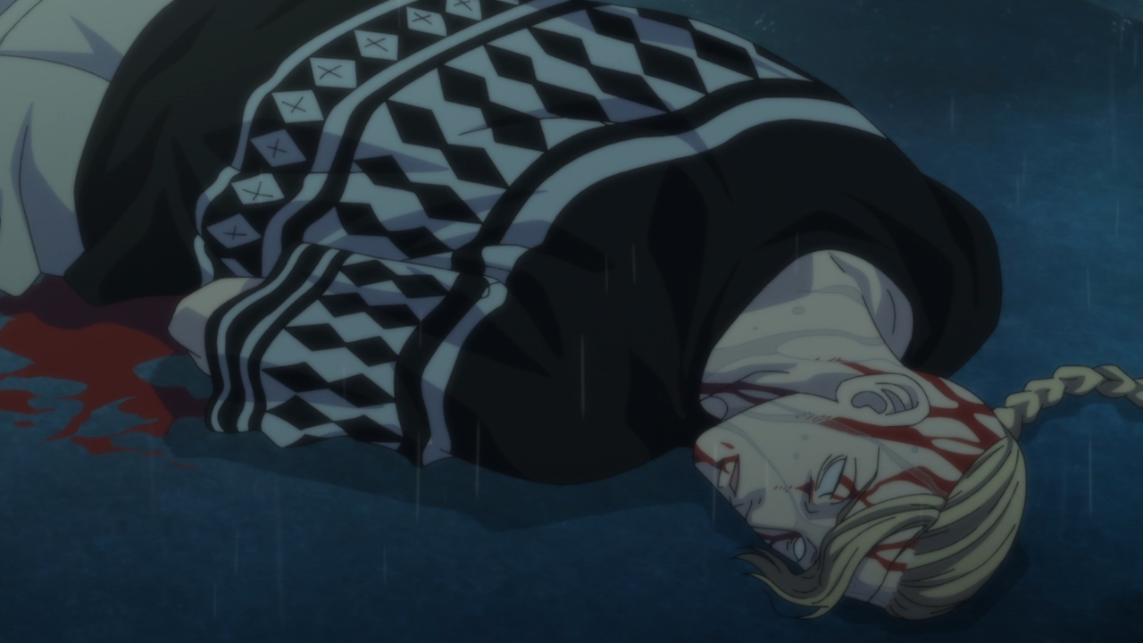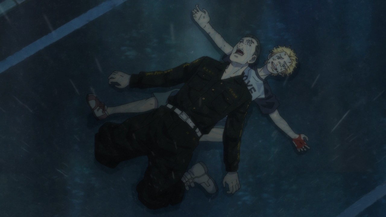 Despite this episode being so stressful, it was really enjoyable. There were so many times where the outcome was looking grim, and let’s be honest, it’s still looking pretty grim, but at the end of it at least Takemichi was able to stand his ground. I love that he was able to come to a realization that all he’s done is run since that first encounter with Kiyomasa. And you know what? Sometimes it’s okay to run, but one fight shouldn’t have you tucking your tail between your legs for the rest of time. So, good on him for actually taking Kiyomasa on head on. And it’s such an interesting fight. It’s not your typical brawl, it’s anything goes. Kiyomasa stabs Takemichi in the hand, and as scummy as that was, there wasn’t anything that said he couldn’t do it. At the same time, it’s pretty comedic that when Takemichi then bites his opponent, the onlookers just call him lame. If your guy gets to use a knife, I think it’s only a courtesy that we get to use teeth even if it’s “lame”. And lameness pays off! Kiyomasa goes down once again!