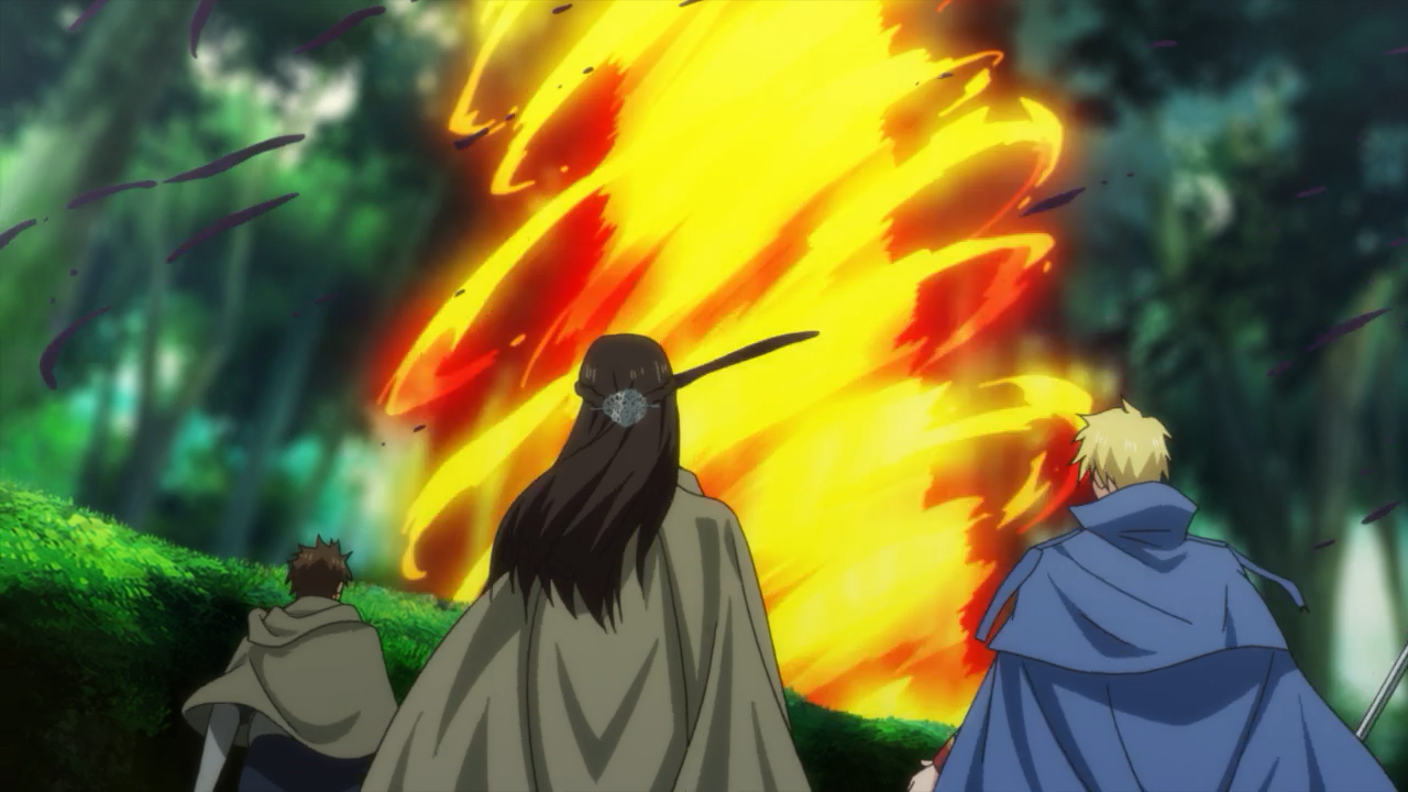 And finally it is expedition time, and just as Albert and Leonhardt has said, the monsters in this forest are no joke. They are a lot more dangerous than the ones found around the Capital, and in this particular case, the fact both the mercenaries and the Knights of the Second Order lack mages in their crew. This is a big problem because magic is the only effective way to deal with the horde of monsters they are facing in these woods: The Slimes. The Knights of the Second Order are critically dependent on the few mages that are with them (Sei, Albert and a few others), that’s why they have sent out a request for mages in the Royal Magi Assembly to join them on their expedition. Luckily for them, Yuri was around when they got the message and imeaditely jumped on the opportunity to head out to Klausner after whining about being left behind. Hilariously, he ended up dragging Aira along for the ride. So while it wasn’t planned, this will be the first time we get to see the girls co-op together, as well as a chance to see Aira perform in a much tougher and grueling environment than the woods Kyle has taken her before.