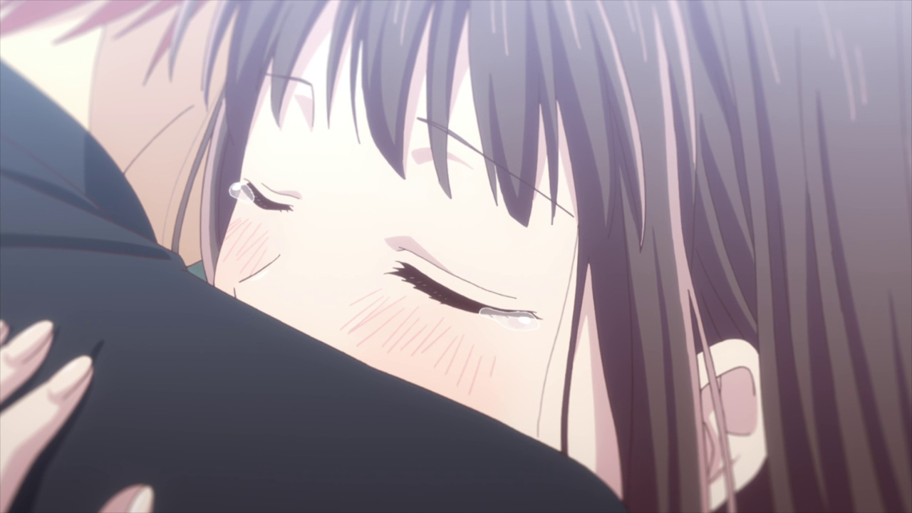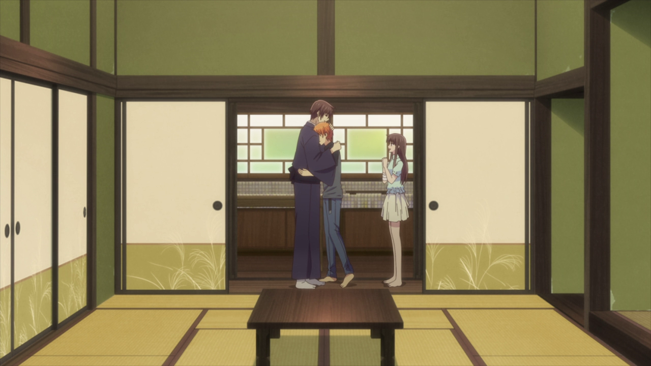 She has come to love Kyo so much that her happy facade absolutely fails. Not to mention that he was always the one to get her actual feelings and thoughts out of her. So it completely makes sense that she can’t force herself to be “fake” in front of him even when she’s trying so hard. Thankfully Kyo does make it right and owns up to the fact that he was acting selfishly. He wasn’t thinking of how she felt at all and was only focused on what HE thought was right. It shows outstanding character development on his part as he’s finally stopped running and is starting to face the situations. He properly confesses his true feelings for Tohru and while I still don’t particularly feel anything for this ship, I can still appreciate the heart and emotion of the scene. Especially when it shows that Tohru doesn’t care what Kyo is, she loves him no matter what, faults and all. And that in itself is very sweet. Also, Kyo giving the most carefree and genuine smile he’s ever made was also a very sweet moment. And dang, they really animated the heck out of that hug lol. A 360 degree pan shot is no joke. That’s flipping HARD to animate.