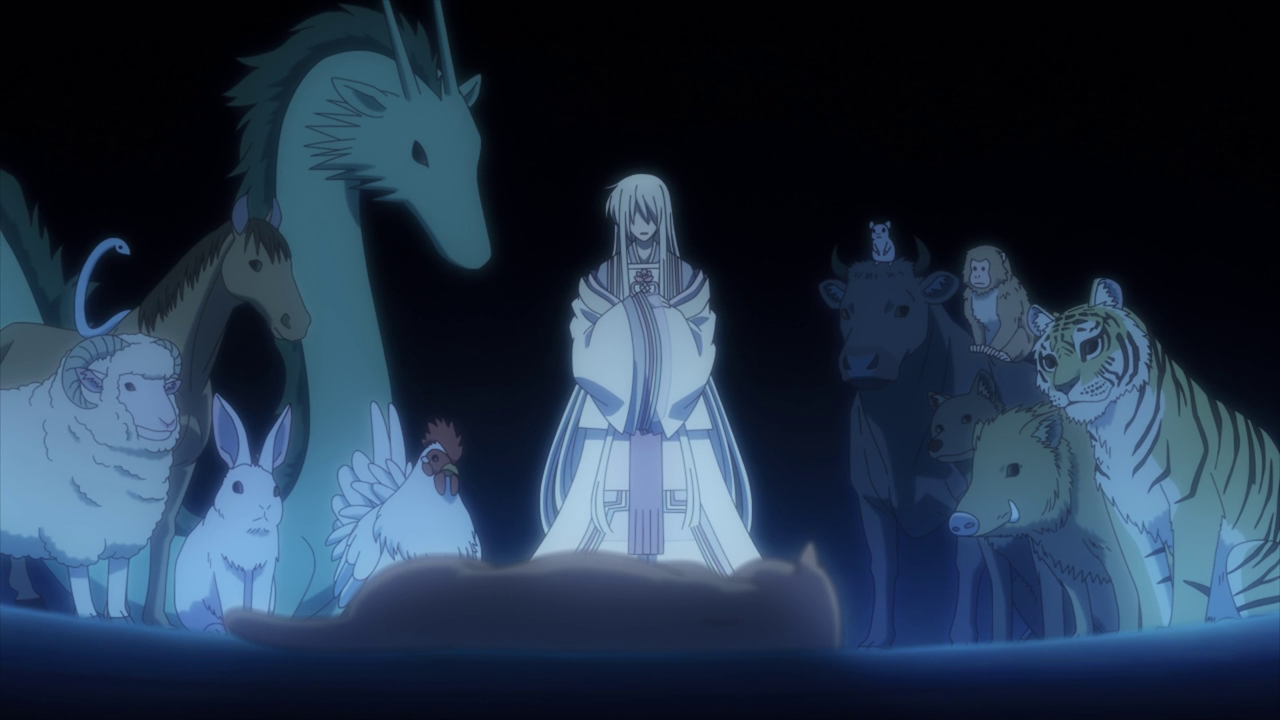We also learn of the original promise and the true story behind the curse. Unlike the story we were told at the start of the series, “god” was actually just a lonely person with great power who befriended a stray cat and eventually invited all the other animals that composed the Chinese Zodiac to many banquets. The story became an interesting message about mortality and that things aren’t meant to last for eternity. Out of all the animals, it was the cat that didn’t want eternity and stated all thing need to end eventually. The cat was essentially forced into this eternal bond when it didn’t even want it. And man, I actually teared up when it showed the cat, with the last of its strength tell god that mortality isn’t a bad thing and the time it spent with god was most precious to it. Kind of like how someone spending the time they have left with someone special. Unfortunately, the message was lost over the others feeling betrayed over how the cat said it didn’t want eternity with them. Which probably was the root of why all the other Zodiac members looked down on the cat in the family and those ugly feelings transformed it into a monster.