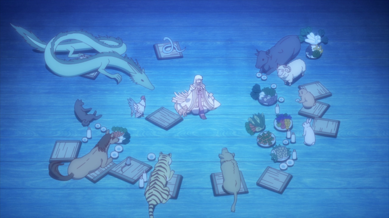 We also learn of the original promise and the true story behind the curse. Unlike the story we were told at the start of the series, “god” was actually just a lonely person with great power who befriended a stray cat and eventually invited all the other animals that composed the Chinese Zodiac to many banquets. The story became an interesting message about mortality and that things aren’t meant to last for eternity. Out of all the animals, it was the cat that didn’t want eternity and stated all thing need to end eventually. The cat was essentially forced into this eternal bond when it didn’t even want it. And man, I actually teared up when it showed the cat, with the last of its strength tell god that mortality isn’t a bad thing and the time it spent with god was most precious to it. Kind of like how someone spending the time they have left with someone special. Unfortunately, the message was lost over the others feeling betrayed over how the cat said it didn’t want eternity with them. Which probably was the root of why all the other Zodiac members looked down on the cat in the family and those ugly feelings transformed it into a monster.