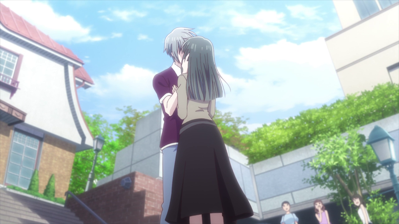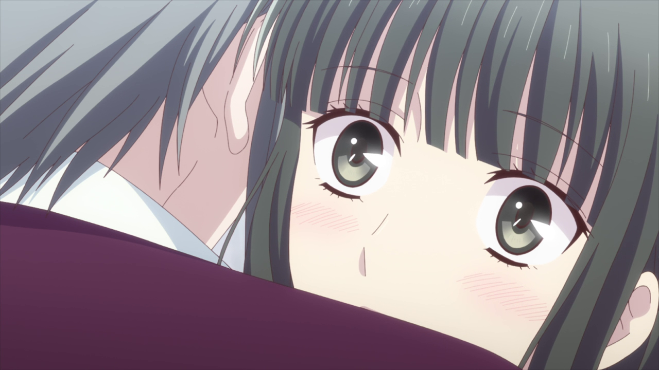 While the rat spirit was a burden on Yuki, he must have still felt like it was a part of him considering it’s been with him all of his life up to this moment. However, when you say “goodbye” there’s always a “hello” just waiting around the corner and with the rat spirit’s parting, it granted Yuki his freedom. Finally allowing him to hug Machi. In turn, she asks if she can call him by his given name and then YOOOOOOOO FREAKING YUKI GOES IN FOR A KISS. I know it was inappropriate, but I just started laughing hysterically at how literally EVERYONE in the are was just watching Yuki and Machi kiss. And I didn’t catch this the first time I watched the episode, but he actually goes in for ANOTHER soon after. BRUH. Yuki, CHILL my dude lol. I do have to appreciate that this pair doesn’t have extremely heavy baggage or drama hanging over them like literally every other main ship in this series. Though I will admit that them getting together did feel a bit fast in the anime, especially since they cut a lot of their content from the manga.
