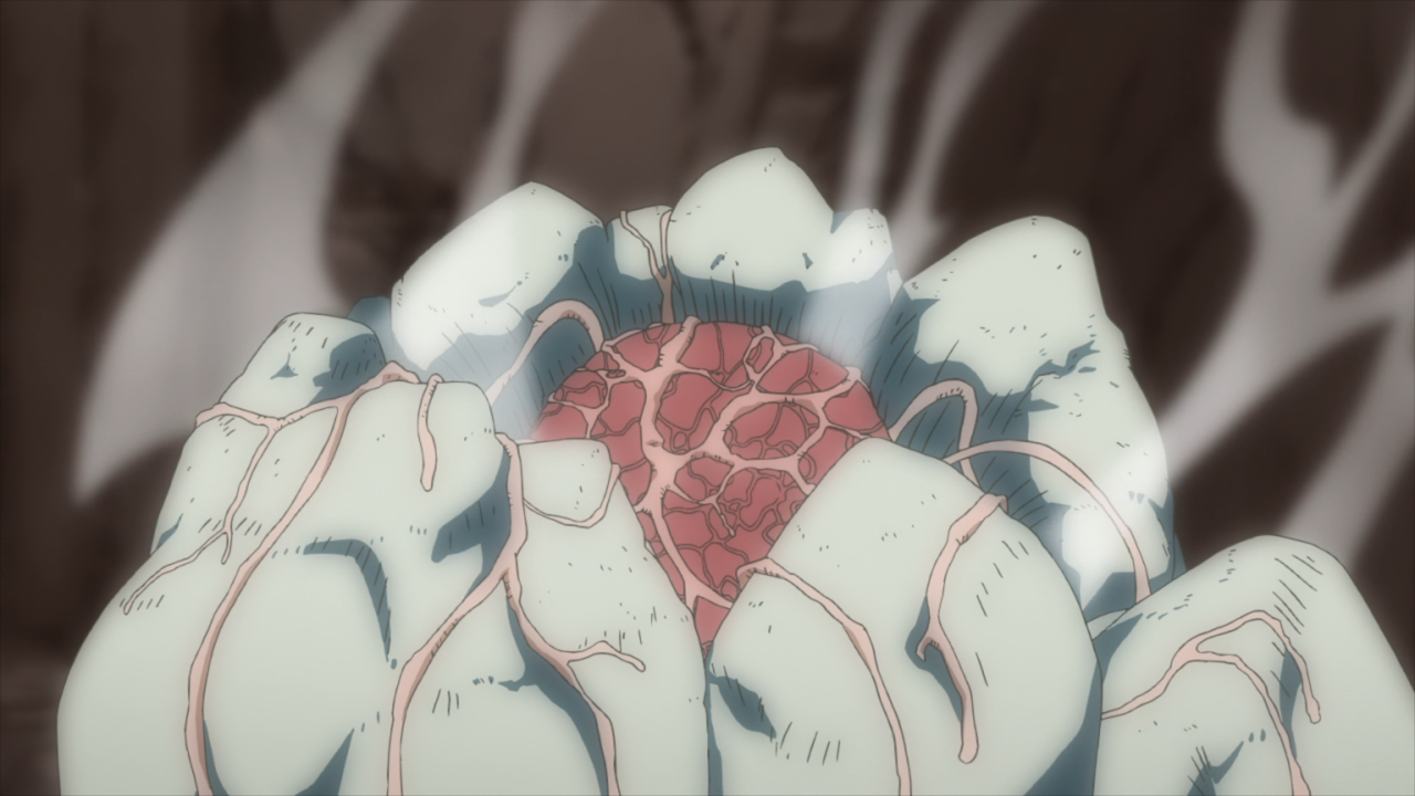 Backing up to the beginning of the episode, I’m glad that he didn’t perish immediately after falling off from the cliff. It would have been a perfect parallel to his injury but having him participate in this fight genuinely made the rest of the episode more emotional. He didn’t go down without a fight, and without him, Fushi probably wouldn’t have made it out either. I definitely agree with the statement that Fushi was a lot safer with him there (though… perhaps we would have gotten a much happier ending if he had headed the advice of his creator four years ago.) I was definitely lured into a false sense of security when Gugu claimed that they had one. Sure, I didn’t think the Nokkers were out for the count, but I really hoped that we would be able to escape with just some minor bumps and bruises.