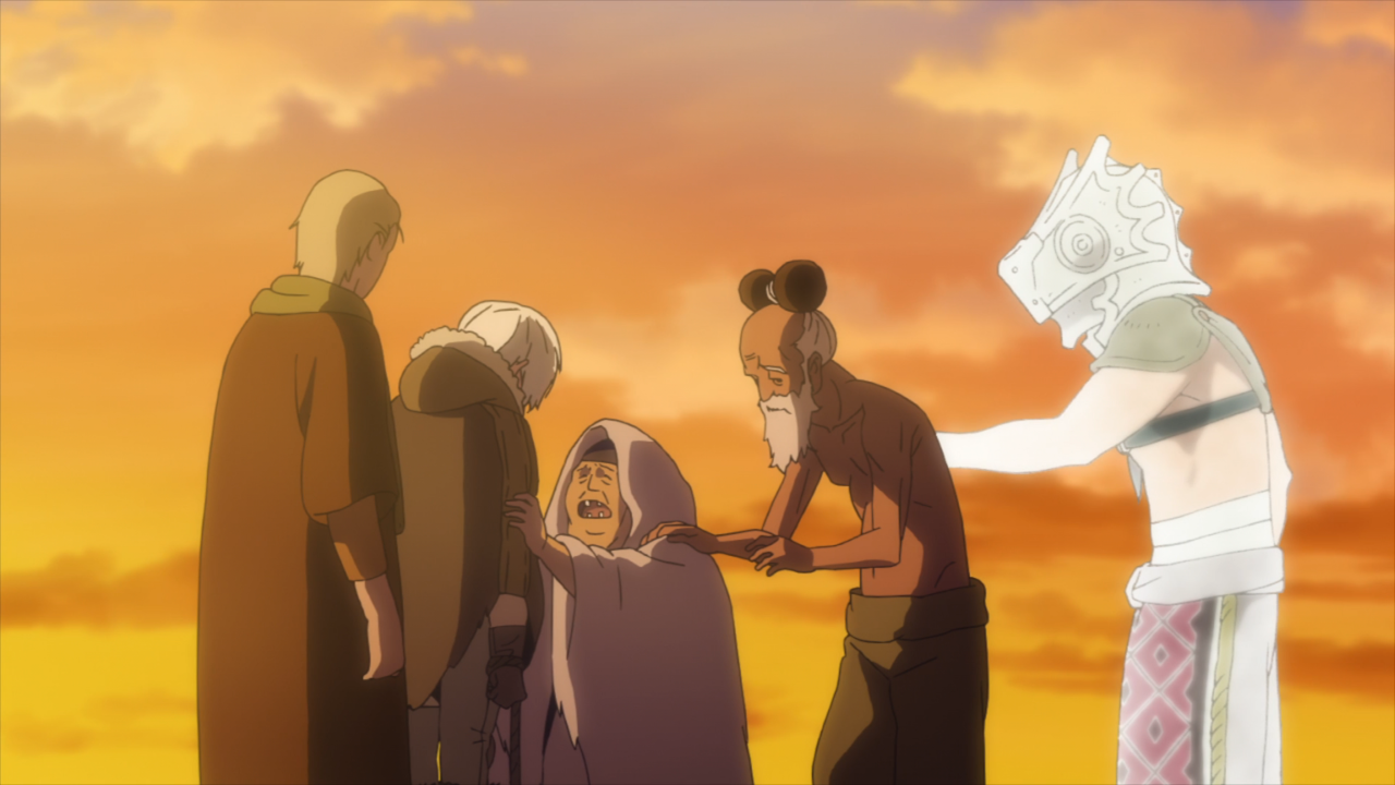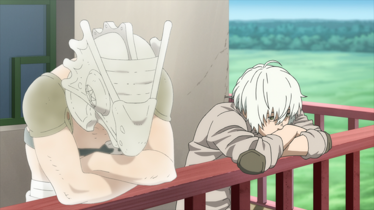 Now, I will be honest, Gugu’s ghost scene didn’t hurt me as much as March’s did, but it was a different kind of pain. March’s had her desperately trying to convince Parona not to kill herself and had heightened emotions. Gugu on the other hand was started off with a little bit of joy in seeing that his injury was healed and he was surrounded by people he loved. But then… as he watched Fushi and his brother relay the news to Pioran and Boozeman, it all sets in. Seeing him give them a hug was genuinely heartbreaking. (And also, he wasn’t able to really make up with his brother before his death and yet his brother was still there for him in the end).