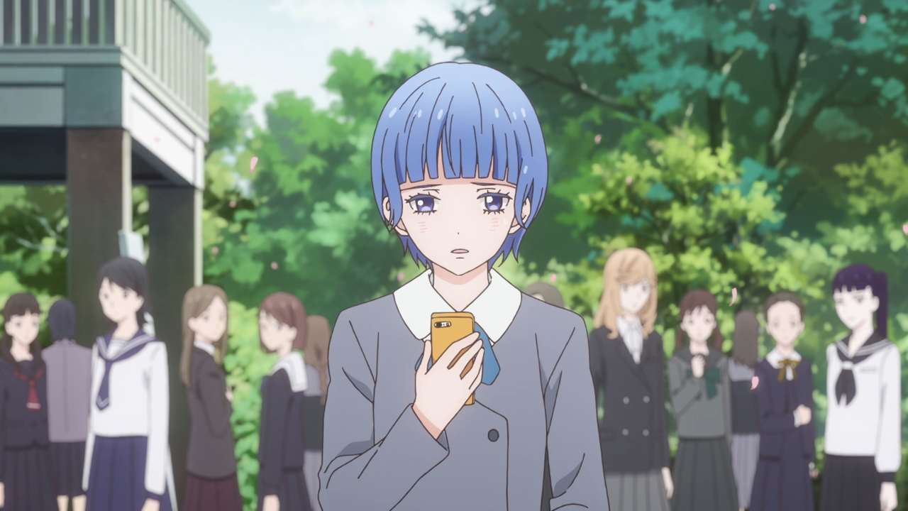 This first episode seemed to go by in a breeze! It was more surface level because they probably need to lay the foundation for the rest of the series. We’re first introduced to Ai, an ex-idol with an extreme distaste for men. I wonder if there’s a story with how that distaste came to be, or it’s as simple as there were a few too many male fans that made inappropriate comments. Though, based on the ending, it looks like there’s a particular fan who really doesn’t understand personal boundaries and has been hunting her down. Ai, please stay safe. Stop walking home alone and always bring a buddy with you. I’m really looking forward to seeing if and how Ai grows throughout the series. She’s very much a lone wolf and it’ll be pretty hard for her to get close to anyone. And arguably, with her standoffish nature I can understand why other girls are not exactly jumping at the chance to be her friend. But hey! If she’s going to want to stay at this men-less school for the next 2 years, it would be a good idea to make some friend.