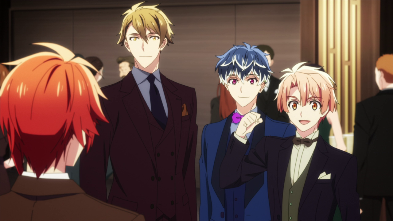 In any case, there is A LOT of shady business happening behind the scenes. We learn how both Hoshikage and Tsukumo are basically opposites of each other in how they treat their employees, but still rather controlling of their talent. Not only is both Yuki and Momo caught up in some weird shady businesses respectively, but there seems to be a lot of key players that are also involved such as Minami and Yamato. We always knew that Yamato was linked to something rather shady in the entertainment business, but we have yet to fully dive into it. We’ve been getting some hints here and there and last season they finally revealed that Yamato was the son of someone very influential in the entertainment business, more specifically in Chiba Salon. However, everyone other than Yuki really knows of Yamato’s situation as Yamato has been keeping a very tight lid on it. Unfortunately for him, Mitsuki and Nagi overhear about his connection to Chiba Salon (after a very comedic sprint across the hall to eavesdrop that had me rolling). So at this point, we are about to delve pretty deeply into Yamato’s situation now that a couple of his group members have found out a piece of his hidden backstory. Because we all know that his group really hates it when someone keeps secrets and will often implore them to open up so they can help. They aren’t going to let him get away with this, especially with how much this seems to burden Yamato.