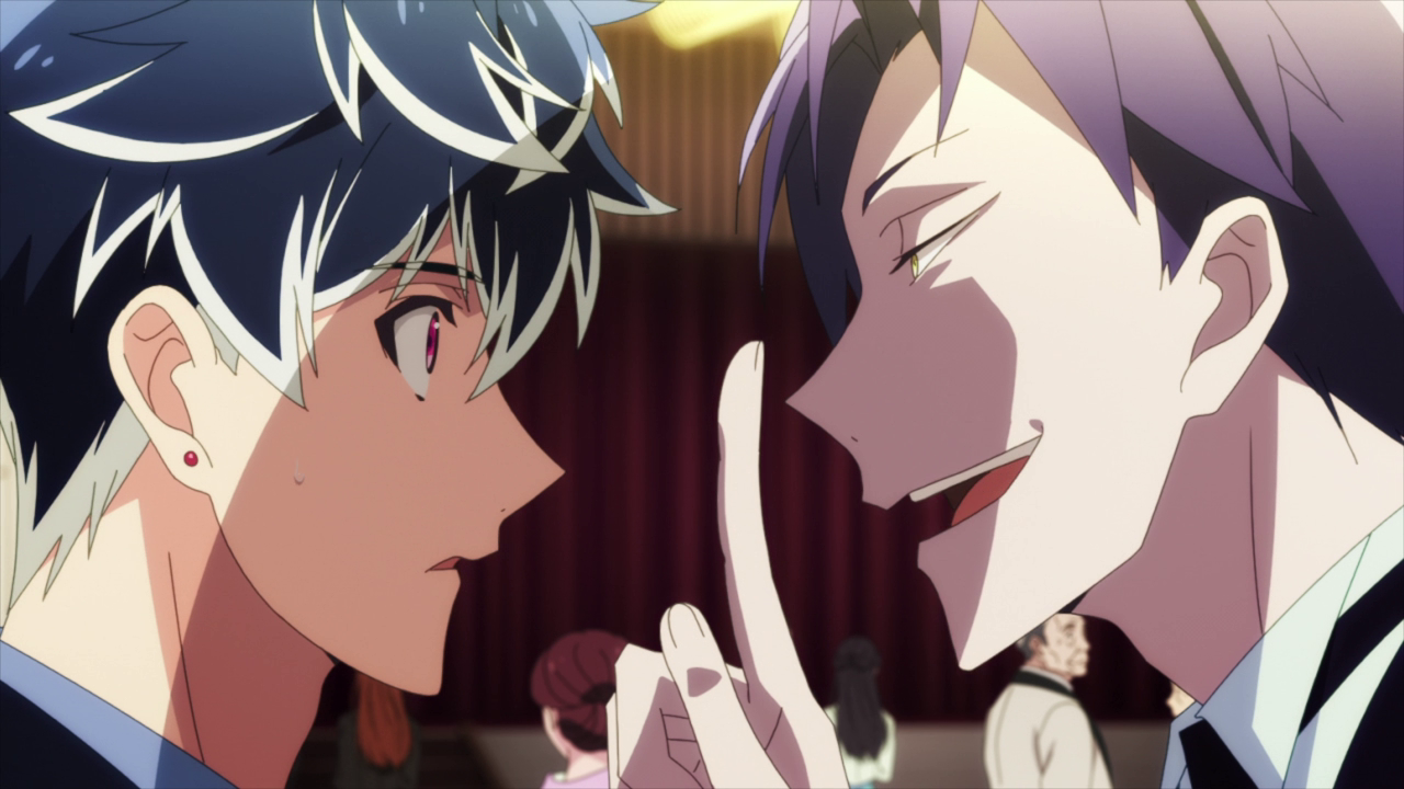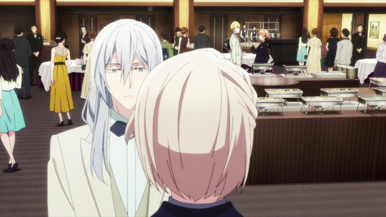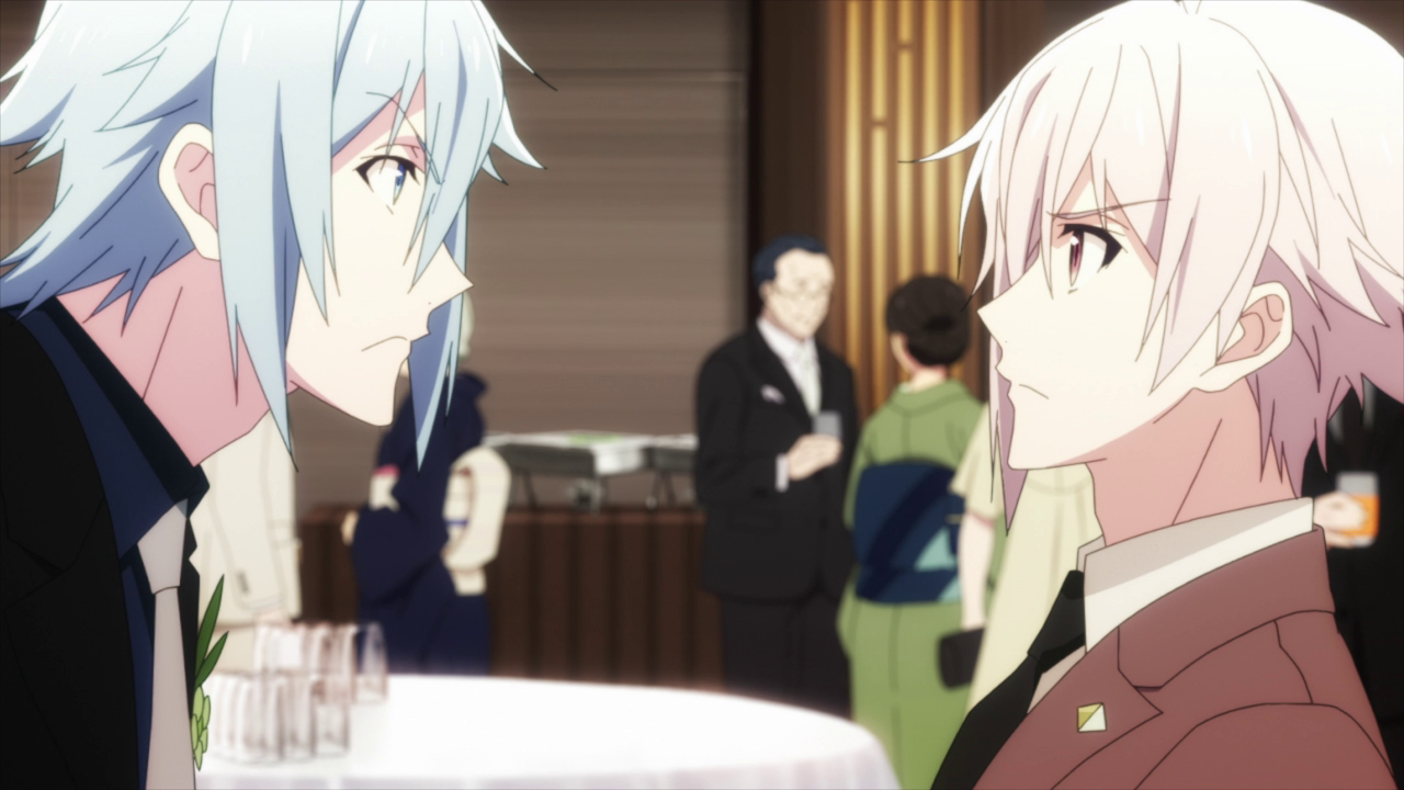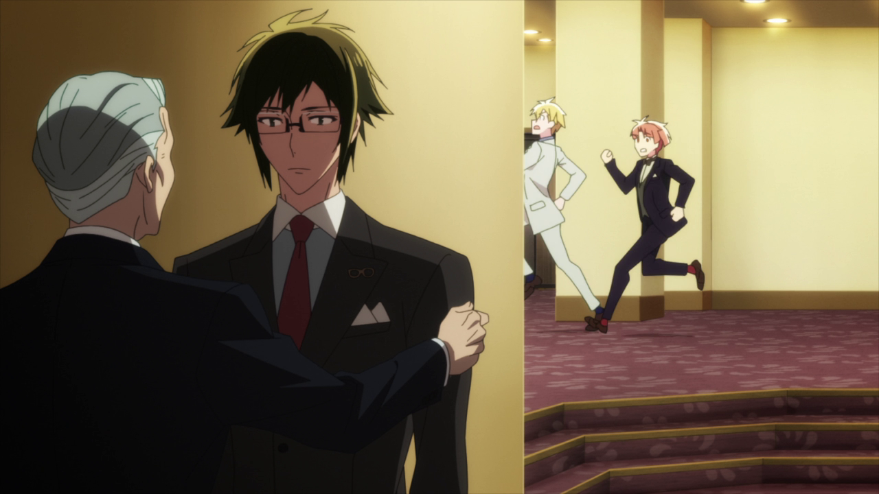 I’m gonna be honest, I am quite SHOCKED that they have pudding at this fancy party. I was so sure they wouldn’t have any. But here they are and of course Tamaki is planning to horde all of them. I also didn’t expect the Tenn and Tamaki dynamic, but not gonna lie, it’s rather amusing to watch. Especially with how exasperated Tenn is when dealing with Tamaki’s rather childish behavior with Tamaki trying to adopt Riku as his younger brother despite Riku being a year older than him. However, unlike most of the other characters, Tenn actually speaks with Tamaki as if they were on the same level. He doesn’t talk to him like he’s a kid and is actually pretty honest with him. Tenn withholds A LOT of information even from his own group. So to see Tenn open up about his and Aya’s situation with Tamaki was rather interesting. Part of it could be that he believes he owes Tamaki something for being within the same custody as Aya and he may see their situations similar as both siblings aren’t really allowed to be with one another for different reasons. I also appreciate that Tamaki actually took the time to listen and try and understand Tenn’s perspective without lashing out like how he did when he originally found out about Aya and Tenn being adopted siblings. Which shows a bit of maturity on his part and I’m very proud of him. Either way, it was a dynamic I didn’t expect but will gladly welcome.