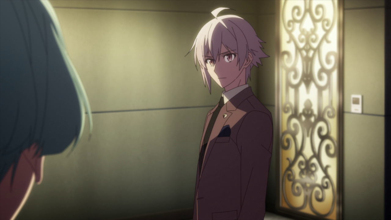 The “unfamiliar” face from the beginning of the episode pops up yet again to confront Tenn and seems to know some rather personal info on him with how Kujo adopted him. Something literally no one before the second season should know about. Even knowing his connection to Riku by calling him “Nanase.” And man, this freaking bra- ahem kid (it’s too early for that), is sure making a lot of bold claims. Though we KNOW that part of what he says will actually happen because, we were told what happened to Trigger at the start of the episode. Though, already my protective instincts are kicking in and I want to punch this kid in the face. Who are YOU to tell Tenn his life is meaningless??? And already, from this brief encounter, you can tell that this kid… well, is very childish. He comes in, spouting all of these things and carries himself as if he knows better. Not to mention, he’s poking and prodding at sensitive topics for Tenn as if trying to strike a nerve. Just like a child would. He kind of reminds me of Hiro from Fruits Basket in a way.