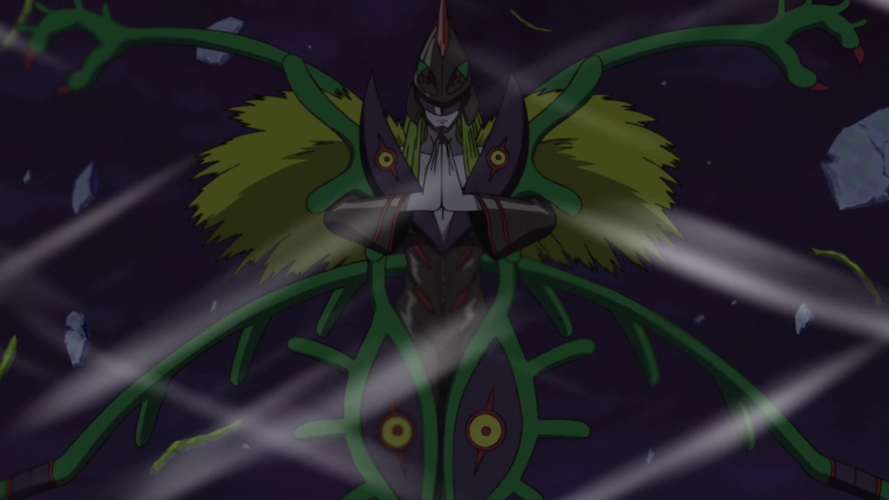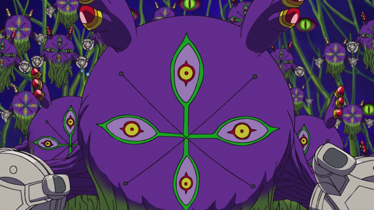 Algomon makes a reappearance after causing so much damage on several different occasions. I will say that it’s interesting that Algomon doesn’t go through a namechange when it evolves and just considers all of its forms as Algomon but just different level stages. The way they act and think seems to be akin to just sharing one mindset among a bunch of worker ants and all just do things according to their “master.” And boy when that Algomon evolved, it totally ended up looking like a magical girl villain. You can’t convince me otherwise lol.